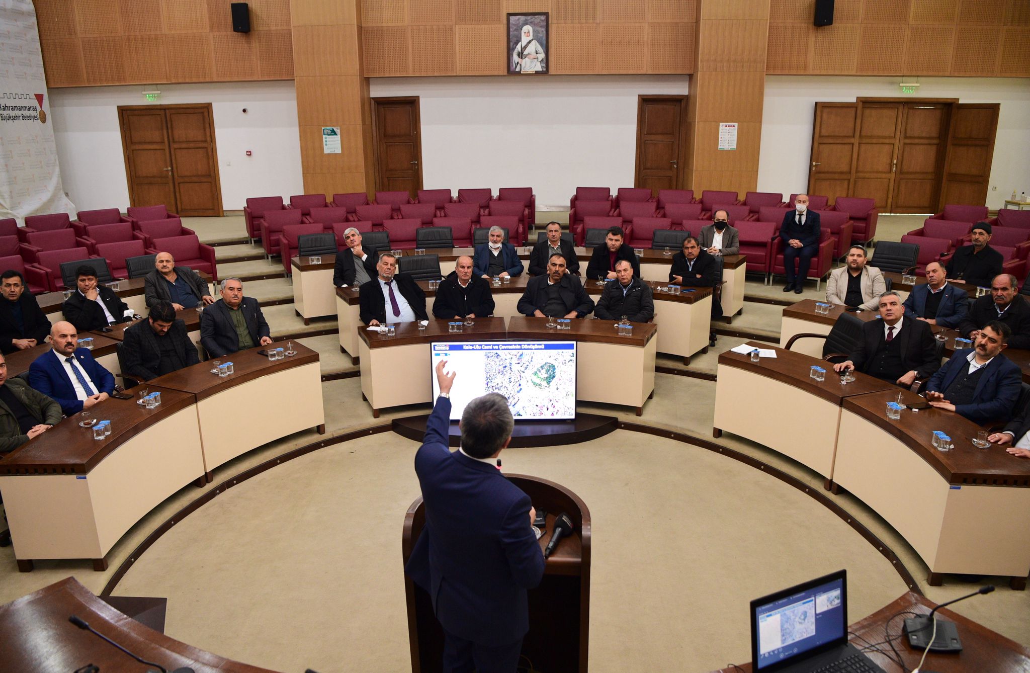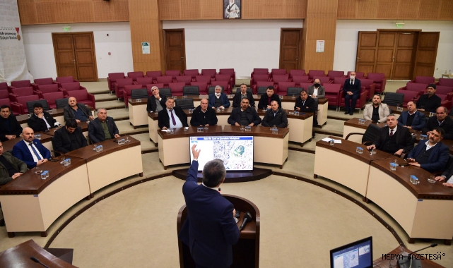 Kahramanmaraş Büyükşehir Belediye Başkanı Hayrettin Güngör, Onikişubat ilçesine bağlı 28 mahalle muhtarını makamında ağırladı. Gelecek yılın planlarını da içeren bir dizi görüşmenin yapıldığı ziyaret, Büyükşehir Belediyesi Meclis Salonu’nda düzenlenen “2019’dan 2021’e Kahramanmaraş” başlıklı sunumla devam etti. Üç yıllık periyotta yapılan yatırımlara ilişkin birçok kalemde bilgiler aktaran Başkan Güngör, “Sadece Türkiye’ye değil, tüm gönül coğrafyamıza ümit olmuş bir liderin izinden Kahramanmaraş’a katma değer üretmek, hizmet üretmek için hep birlikte gece gündüz emek verdik, veriyoruz. Kahramanmaraş'ın Anadolu şehirleri arasında kendine özgü bir değeri var. Şunu da belirtmeliyim, Cumhurbaşkanı’mızın yanında da bir hatırı var” ifadelerini kullandı.