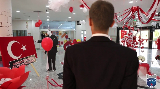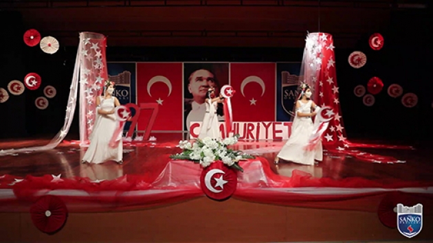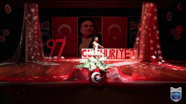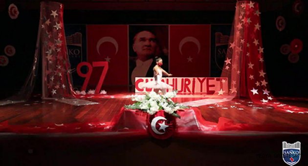 Cumhuriyet’in ilanının 97. yıldönümünde bizler SANKO Okulları olarak; Cumhuriyetimizi ve onun değerlerini sonsuza dek yaşatacağımıza bir kez daha söz veriyor, öğrencilerimizi vatan sevgisi, bayrak aşkı ve cumhuriyet bilinciyle yetiştirmeye devam ediyoruz. Cumhuriyetimizin kuruluş yıldönümü vesilesiyle; 1001 emek ve fedakârlıkla kurdukları Türkiye Cumhuriyeti’ni bizlere armağan eden Gazi Mustafa Kemal Atatürk ve silah arkadaşları başta olmak üzere bütün şehit ve gazilerimizi şükran, saygı ve rahmetle anıyor ve onların anısına bir kez daha tüm dünyaya haykırıyoruz. Yaşasın Cumhuriyet.”