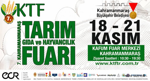 Kahramanmaraş Büyükşehir Belediyesi’nin katkılarıyla düzenlenen 7’inci Kahramanmaraş Tarım, Gıda ve Hayvancılık Fuarı başlıyor. Kahramanmaraş Fuar Merkezi’nde (KAFUM) düzenlenecek fuar 18 Kasım Perşembe günü kapılarını ziyaretçilerine açacak. Çiftçi ve üreticilere yönelik yenilikçi ürünlerin tanıtılacağı, sektörel hizmet sağlayıcılarının yer alacağı fuar 21 Kasım Pazar gününe kadar 10.30 ila 19.30 saatleri arasında ziyaret edilebilecek. Düzenlenecek fuara ilişkin detaylı bilgiye http://ktftr.com  internet sitesinden erişilebiliyor.