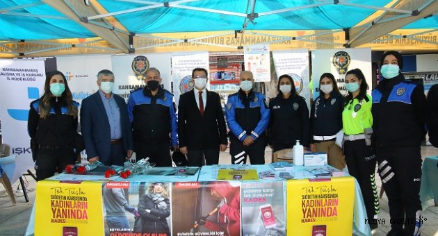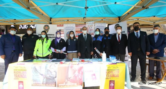 Kahramanmaraş Emniyet Müdürlüğü Toplum Destekli Polislik Şube Müdürlüğümüzce Sayın Valimiz Ömer Faruk COŞKUN, Büyükşehir Belediye Başkanımız Sayın Hayrettin GÜNGÖR, İl Emniyet Müdürümüz Sayın Salim CEBELOĞLU, İl Protokolü ve vatandaşlarımızın katılımıyla “8 Mart Dünya Kadınlar Günü” münasebetiyle Demokrasi Meydanı ve Piazza AVM’de Stant açılarak etkinlikler düzenlenmiş, yapılan etkinliklerde Emniyet Genel Müdürlüğümüzün “Kadın Acil Destek Uygulamasının (KADES)” tanıtımı ve kullanımı hakkında bilgilendirme/ bilinçlendirme çalışmaları yapılmıştır.Ayrıca İl Emniyet Müdürlüğümüz tarafından hazırlanan Kadına Yönelik Şiddet ve Aile İçi Şiddetin Önlenmesi Projesi “Mutlu Kadın, Huzurlu Aile, Güçlü Toplum” kapsamında yapılan çalışmalarda toplam 20 adet afiş, 900 adet broşür dağıtılmış yaklaşık 2500 kişiye ulaşılmıştır.