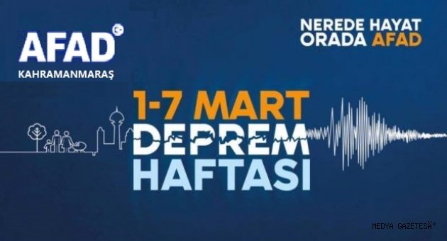 Kahramanmaraş İl AFAD Müdürlüğü, 1-7 Mart Deprem Haftası nedeniyle, depremsellik açısından riskli bölgede bulunan Kahramanmaraş’ta, kent insanının deprem farkındalığını artırmak, depreme karşı birey ve aile olarak alınacak önlemlerle ilgili bir dizi uyarıcı mesajlar hazırladı.