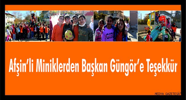 Bir süre önce Afşin ilçesinin Afşinbey İlkokulu’nun bahçesinde Büyükşehir Belediyesi tarafından yapımı tamamlanan çocuk parkı için öğrencilerden teşekkür geldi.