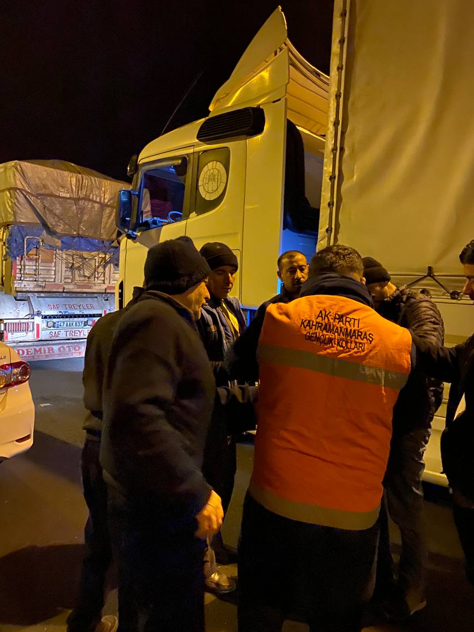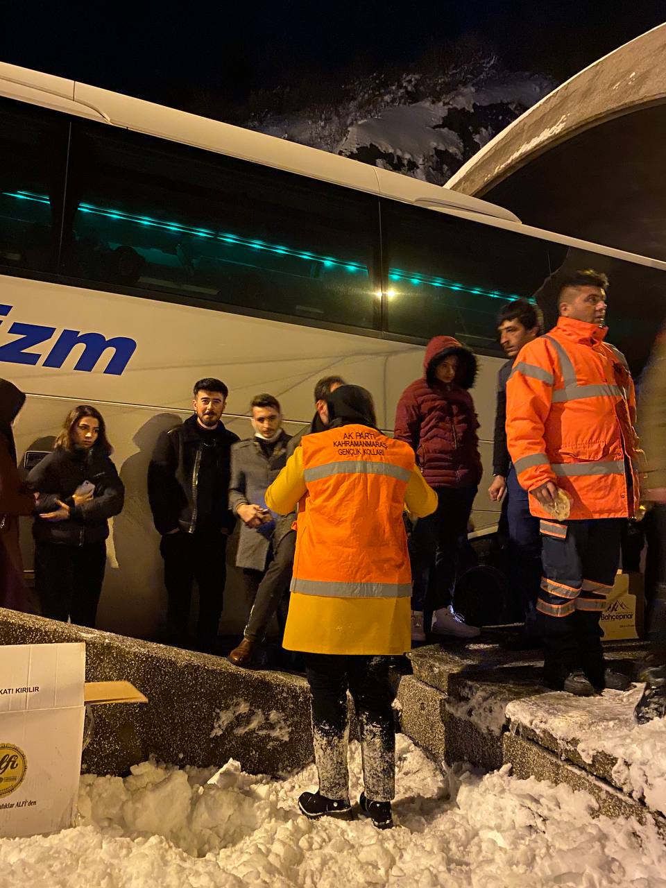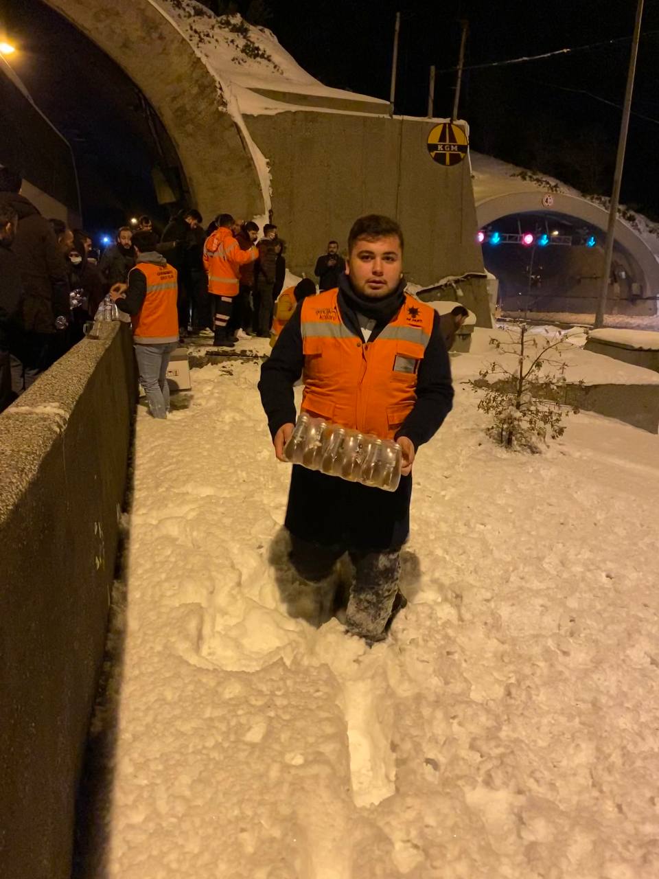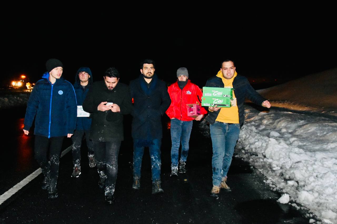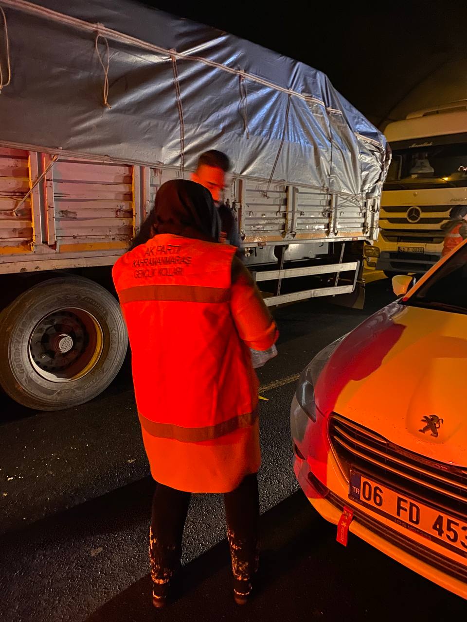 Ardından Kahramanmaraş’tan hareket ederek, Adana-Gaziantep otobanında yoğun kar yağışı ve araçların arızalanmasından kaynaklı oluşan trafik yoğunluğunda yolda kalan araçlara yiyecek ve içecek ikramında bulunmak üzere yola koyulan Kahramanmaraş Gençlik Kolları Teşkilatı vatandaşın yoğun ilgisi ve memnuniyeti ile karşılaştı.