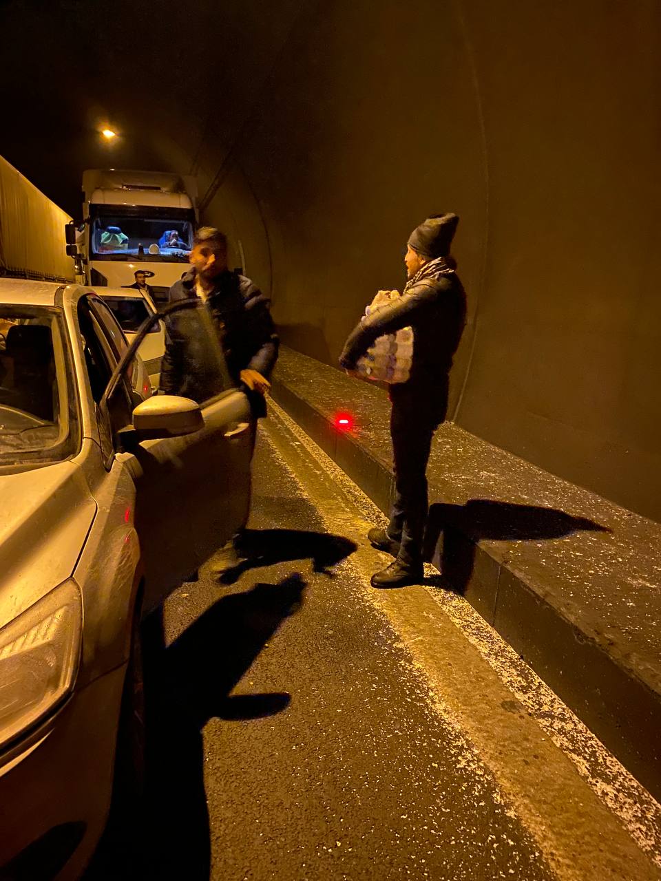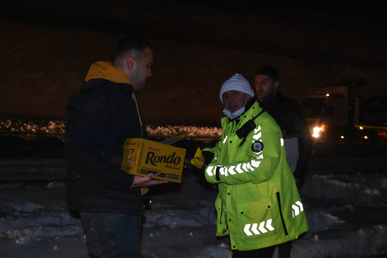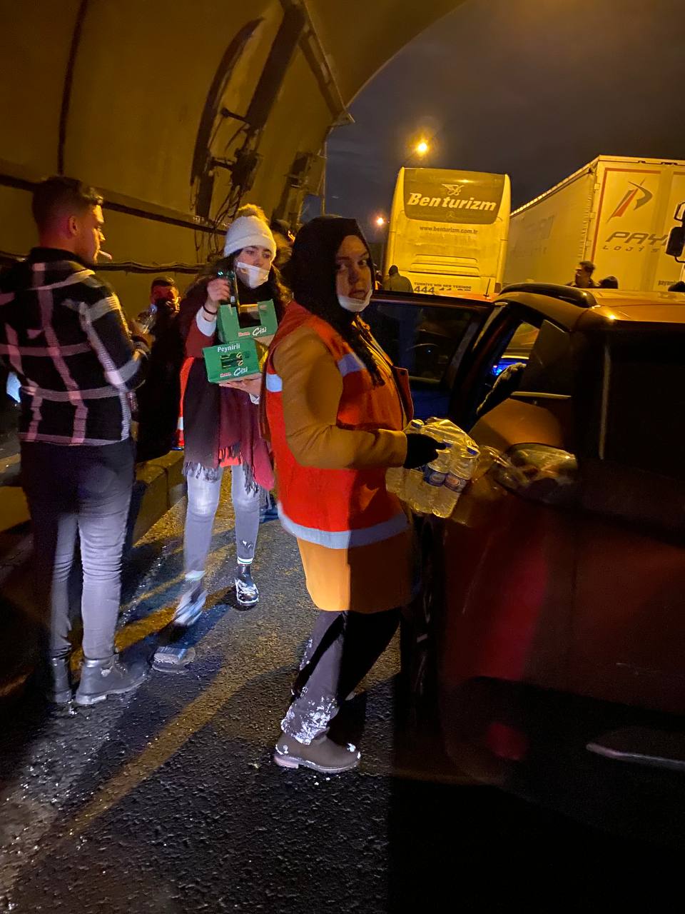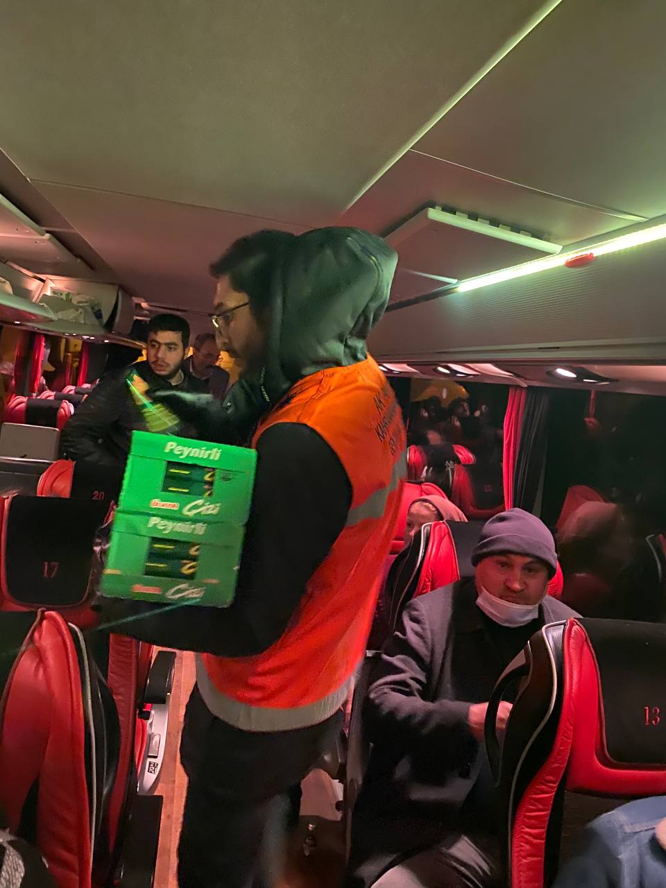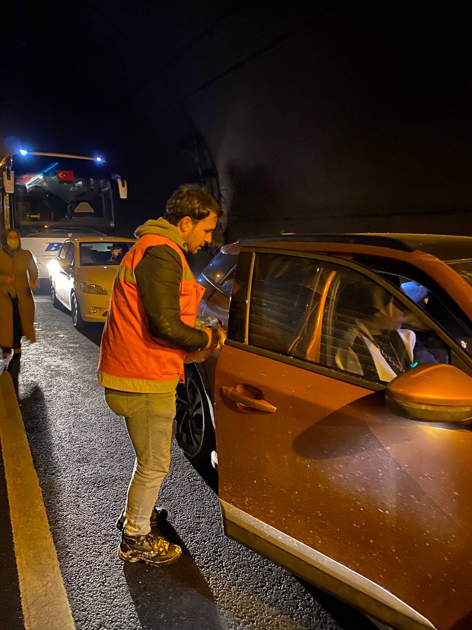 Ardından Kahramanmaraş’tan hareket ederek, Adana-Gaziantep otobanında yoğun kar yağışı ve araçların arızalanmasından kaynaklı oluşan trafik yoğunluğunda yolda kalan araçlara yiyecek ve içecek ikramında bulunmak üzere yola koyulan Kahramanmaraş Gençlik Kolları Teşkilatı vatandaşın yoğun ilgisi ve memnuniyeti ile karşılaştı.