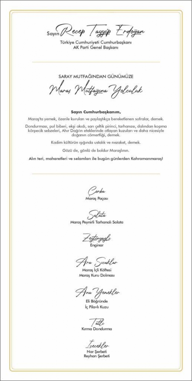 Alpedo-Kervan Lezzet Grubu Kahramanmaraş’ı Ankara’ya taşıdı.AK Parti Genel Merkezi'nde Merkez Yürütme Kurulu (MYK) toplantısı sonrası, Alpedo-Kervan Lezzet Grubu ikramlarda bulunarak, yöresel lezzetlerimizle toplantıyı taçlandırıldı.Kahramanmaraş’ın tanıtımı için yoğun çabalar harcayan turizm elçisi Alpedo Kervan Lezzet Grubu Yönetim Kurulu Başkanı Sami Kervancıoğlu’nun girişimleriyle, Kahramanmaraş saray mutfağı Cumhurbaşkanımız Recep Tayyip Erdoğan ve kurmaylarının beğenisine sunuldu.Sunulan yemeğin yanında “SARAY MUTFAĞINDAN GÜNÜMÜZE MARAŞ MUTFAĞINA YOLCULUK” adlı kahramanmaraş adına mektup bırakıldı. mektupta; Sayın cumhurbaşkanım, Maraş’ta yemek, özenle kurulan ve paylaştıkça bereketlenen sofralar, demek.Dondurması, pul biberi, ekşi ahıdı, sarı çeltik pirinci, tarhanası, dalından kopma körpecik zeytinleri, ahır dağı’nın eteklerinde otlanan kuzuları ve daha nicesiyle doğanın cömertliği demek.Kadim kültürün ışığında ustalık ve nezaket, demek.Gözü de, gönlü de boldur Maraşlının.Alın teri, mahareti ve selamları ile bugün günlerden Kahramanmaraş!Kahramanmaraş'ın dünya markası olma yolunda emin adımlarla ilerleyen Alpedo-Kervan Lezzet Grubu Kahramanmaraş’ı gerektiği en iyi yerlere ulaştırmak için çabaları hız kesmeden devam ediyor.Geçtiğimiz günlerde gerçekleştirilen MÜSİAD EXPO 2020 Fuarı’nda da Kahramanmaraş’ı ve dondurmasının kapılarını bir kez daha dünyaya açan başkan Kervancıoğlu yaptığı dondurma kesme şovuyla da izleyenleri cezbetmişti.Başkan Kervancıoğlu, kentin yöresel lezzetlerini bu tarz programlara taşıyarak dünyanın dört köşesindeki insanların Kahramanmaraş’ın saray mutfağını tanımasını sağlıyor Yapılan Bu çalışmaların devamını diliyor Alpedo-Kervan Lezzet Grubu’nu canı gönülden tebrik ediyoruz.