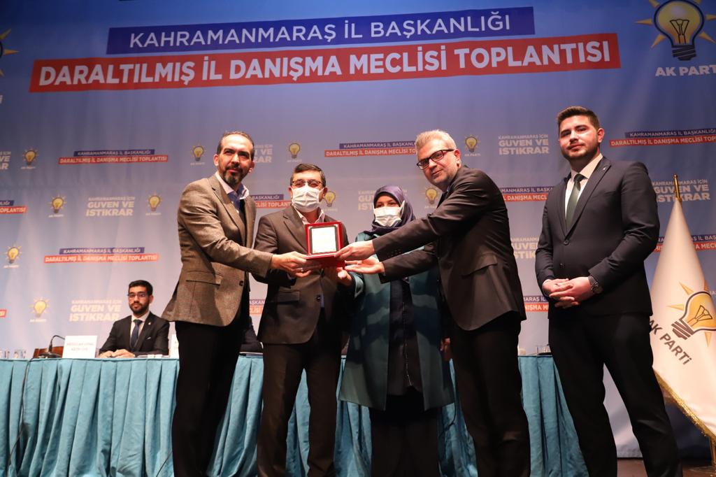 Konuşmaların ardından ilçeler arasında 2022 yılı Ocak ayı yeni üye kayıt çalışmalarında başarı gösteren AK Parti Göksun İlçe Teşkilatına plaket takdim edildi. Plaketi alan AK Parti Göksun İlçe Başkanı Mustafa Akgül teşkilatı adına teşekkür ederek çalışmalara aynı kararlılıkla devam edeceklerini vurguladı.