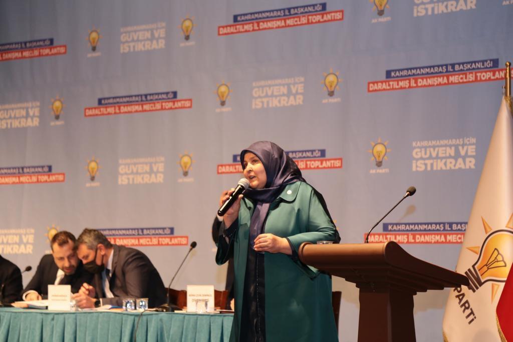 Tüm teşkilat üyelerinin eksiksiz katıldığı Daraltılmış İl Danışma Meclis Toplantısında selamlama konuşması yapan AK Parti Kahramanmaraş Milletvekili Habibe Öçal’da AK Parti olarak birlik ve beraberliklerinin devam etmesi temennisinde bulunarak 2023 seçimlerine doğru emin adımlarla yürüdüklerini söyledi. AK Parti teşkilatına övgüler yağdıran Öçal, onlarla yol arkadaşlığı yapmaktan da mutluluk duyduğunu ifade etti.