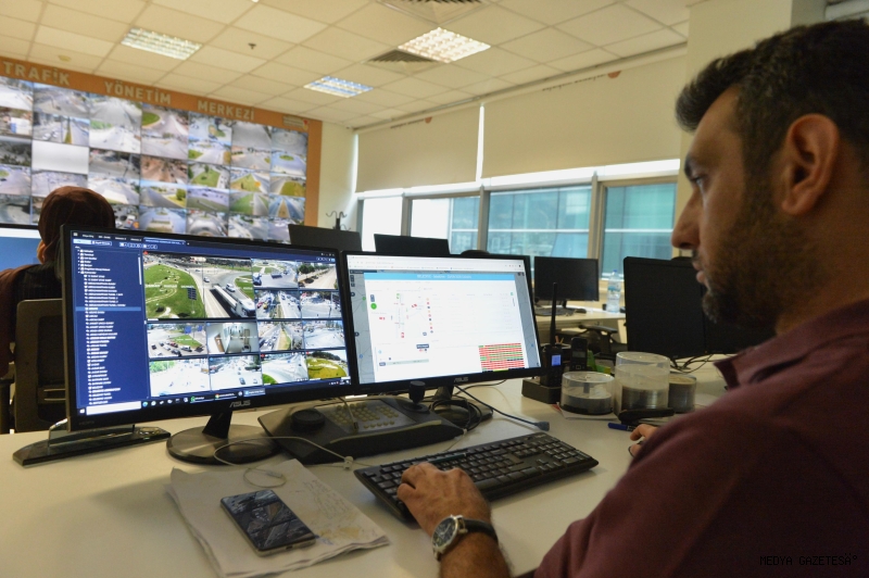 Büyükşehir Belediyesi Ulaşım Hizmetleri Dairesi Başkanlığı bünyesindeki Trafik Yönetim Merkezi, trafik sıkışıklığından doğal afet gibi şehir hayatını etkileyebilecek durumlara kadar geniş bir yelpazede olayları anında tespit ediyor. Gelişmiş teknolojik altyapı sayesinde, tüm kavşaklar toplamda 322 kamera ve DMS (Değişken Mesaj Sistemi) gibi gerçek zamanlı olarak izleniyor ve sinyalizasyon sistemlerine merkezden müdahale edilebiliyor. Akıllı sistemler, proaktif bir yaklaşım sunarak, trafiğin yoğunlaşabileceği saatler veya günler için önceden uyarılar üretiyor. Bu sayede trafik yönetimi daha kolay ve verimli bir şekilde gerçekleştiriliyor.