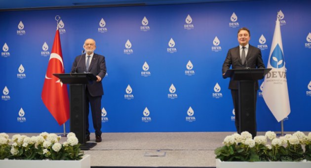 DEVA Partisi heyetinde ise Genel Sekreter Sadullah Ergin, Teşkilat İşleri Başkanı Nihat Ergün ve Ekonomi ve Finans Politikaları Başkanı İbrahim Çanakcı bulundu.İki genel başkan, bir buçuk saat süren görüşmenin ardından basının karşısına geçti. 29 Aralık’ta büyük kongrelerini gerçekleştirerek mümkün olan en kısa zamanda olası bir seçime hazır olmak istediklerini vurgulayan Babacan şu ifadeleri kullandı:Asgari ücrette TÜİK’in açıkladığı rakamlar değil, gerçek enflasyon dikkate alınmalıÜlkemizde “çalışıyorum, işim var” diyen vatandaşlarımızın yarıya yakını asgari ücretle geçiniyor. Asgari ücret rakamı önemli. Bunu hükûmet belirliyor, ödemeyi işveren yapıyor. Asgari ücret, şu anda insanca yaşanabilir seviyenin çok altında. Hatta açlık sınırının dahi altında kaldığını görüyoruz. Artışlarda hep enflasyon artı refah payı düşünülür. Peki hangi enflasyon? TÜİK’in açıkladığı enflasyona bakacak olursanız, 10 küsur açıklıyor. Son iki ayda tam 41 ilimizi ziyaret ettim. Alıp sattığı malın fiyatı geçen sene kaçtı, bu sene kaç diye esnafa sordum. Yüzde 30, 40, 50 diyen var. Gerçek çarşı pazar enflasyonu bu. Bu değerlendirmelerde TÜİK’in açıkladığı rakamlar değil, gerçek enflasyon ve hayat pahalılığı dikkate alınmalı.Tiyatro önemli bir sanat ama siyasetin sahici olması lazımBütçe görüşmelerinde sayın Bakan’ın bazı ifadeleri olmuş. Bana da arkadaşlar daha sonra gösterdi. Çünkü normalde takip ettiğimiz bir kişi değil. Öncelikle, orası Meclis kürsüsü. Orada alışık olmadığımız bir üslup gördük. Hep söylüyorum: Tiyatro çok önemli bir sanat alanı ve sanatçılarımız kendi mecralarında sanatlarını icra ederler. Siyasetin sahici bir şey olması lazım. Siyasetteki insanların daha önce neler söylediklerine, bugün ne söyleyip ne yaptıklarına bakıyorum. Eğer çok sık zikzaklar varsa, bugünkü ifadeler üzerinde çok durulması gerektiğini düşünmüyorum. Çünkü bugünkü ifadeler böyle olur, yarın başka bir konjonktürde bambaşka ifadeler gelebilir. Üzerinde yorum yapmaya değer bir konu olarak görmüyorum. Bizim tutumumuz, çizgimiz açık. Bizde zikzak yok, U dönüşü yok. 20 yıldır ilkeler ve değerler bazında aynı yerdeyiz. Günlük esen rüzgarlar karşısında söylenen ifadeler hakkında bir şey söylemeye değer bulmuyorum.Problemleri hamasetle çözemezsinizSiyasi partilerle ilgili hukuk süreci tarafsız ve bağımsız yargı arafından yürütülür. Parti başkanlarının tek taraflı ifadeleri anlamsızdır. Türkiye’yi yöneten zihniyetin bu ülkeyi düşman üretmek üzerinden yönetmeye çalıştığını iyi görmemiz gerekiyor. Artık hiçbir konuda başarı üretemeyince, her konuda problemler büyüyünce, vatandaşa daha güzel yarınlar vaat edemeyince dönüp dolaşıp düşman arayışı başlıyor. Her hafta, her ay bir düşman gündemi ortaya atılıyor. İktidarın büyük ortağına ve diğer ortaklarına çağrı yapmak istiyorum: Şu ülkenin sorunlarını çözün. İnsanlar işsiz, gençlerimiz yarınlarını başka ülkelerde aramaya başladı. Esnafımız kepenk indirmeye başladı. Bu ülkenin derin problemlerini hamasetle, başka konuları gündeme getirerek örtemezsiniz.Bu ülke artık korkmuyorBu tür rejimlerde çok tipiktir: Beceremezler, yapamazlar, arkasından suçlu veya düşman ararlar. Böylece ilgiyi başka noktaya çekmeye çalışırlar. Biz demokrasiyi çok önemsiyoruz. Evet, özgürlükleri çok önemsiyoruz. Özgürlükler bazılarının işine gelmese de biz, ifade özgürlüğü başta olmak üzere, özgürlükleri çok önemsiyoruz. Kim ne derse desin. İşlerine gelmeyenleri de temel ilkelerini gözden geçirmeye çağırıyoruz. Bu ülkeyi susturamazsınız. Bu ülke artık korkmuyor. Bu ülkeyi susturarak bir yere varamazsınız. Biz özgürlük dedikçe korkuyorlar. Biz artık milletimize korkmayın diyoruz. Korkması gerekenler belli.