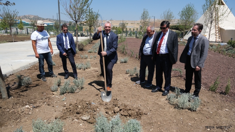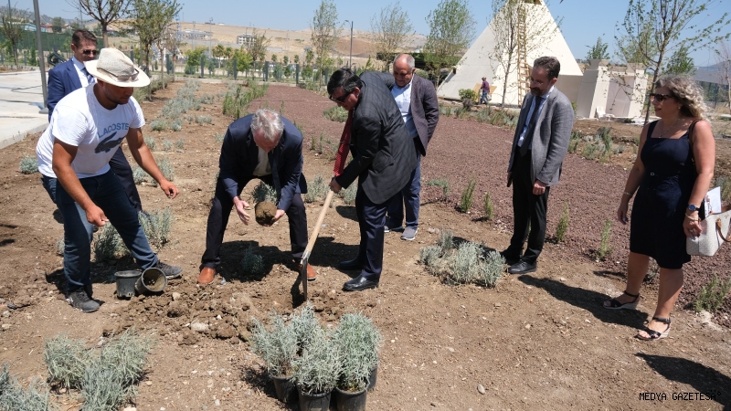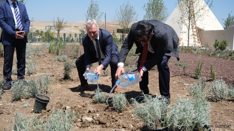 Almanya Bahçesi’ne aromatik bitki dikimi de yapan Thomas Huber, Janine Kardeş ve Zeynep Yıldırım, Erdoğan Kök ve Dr. Ali Ünsal’ın rehberliğinde alanı gezdi.