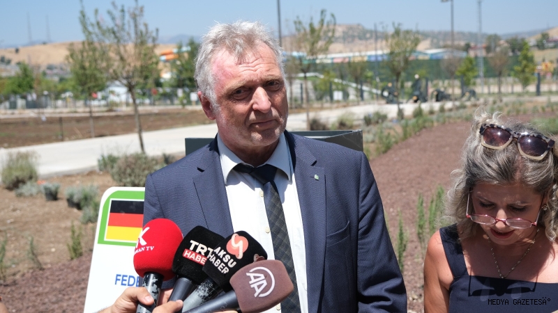 Almanya’nın Ankara Büyükelçiliğinde görevli Gıda ve Tarım Müsteşarı Thomas Huber, bitki dikiminin ardından basın mensuplarına açıklamalarda bulundu. Huber, depremde hayatını kaybeden vatandaşlara baş sağlığı dilerken, “Şubat ayında meydana gelen depremler, özellikle Kahramanmaraş ve Hatay bölgelerinde travmatik ve aynı zamanda da ağır bir ekonomik yük yaratmıştır. Almanya, çeşitli alanlarda kapsamlı yardım desteğinde bulunmuştur. Buna rağmen çok sayıda insan şehirlerden daha az etkilenen kırsal bölgelere ya da uzak şehirlerdeki akrabalarının yanına taşındı. Aradan 6 aydan fazla bir süre geçmesine rağmen hasarın tamamı giderilebilmiş değil ve yeniden inşa çalışmaları muazzam çabalara rağmen uzun zaman alacaktır. Kaybedilen canların ve yaşam alanlarının acısı hala derinden hissedilse de, önemli olan artık ileriye bakmaktır. Buradaki çocuklar ve tabi ki yetişkinler de yakın gelecekte, sonraki nesiller için yaşamaya değer, sürdürülebilir, sağlıklı ve geçimlerini sağlamak için fırsatlar sunan bir yaşam alanına sahip olmak istiyor. Binaların ve altyapının yeniden inşasının yanında ekonomik faaliyetlerin yeniden inşasına da acilen ihtiyaç duyulmaktadır. Bunun için insanların da, istihdam olanağı sunan ve yeniden üretim yapmak isteyen şirketlerin bulunduğu şehirlere geri dönmesi gerekiyor” dedi.