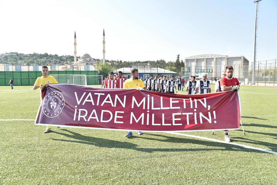 15 Temmuz Demokrasi ve Milli Birlik Günü anısına düzenlenen Suriye Afrin Ampute Futbol Takımı ile Türkoğlu Belediyesi Ampute Futbol Takımı maçı Türkoğlu Sentetik Çim Sahasında oynandı.