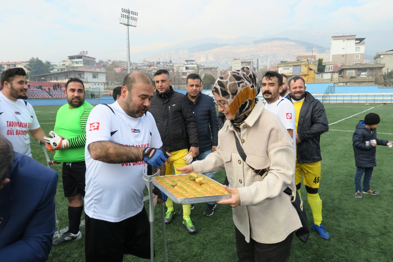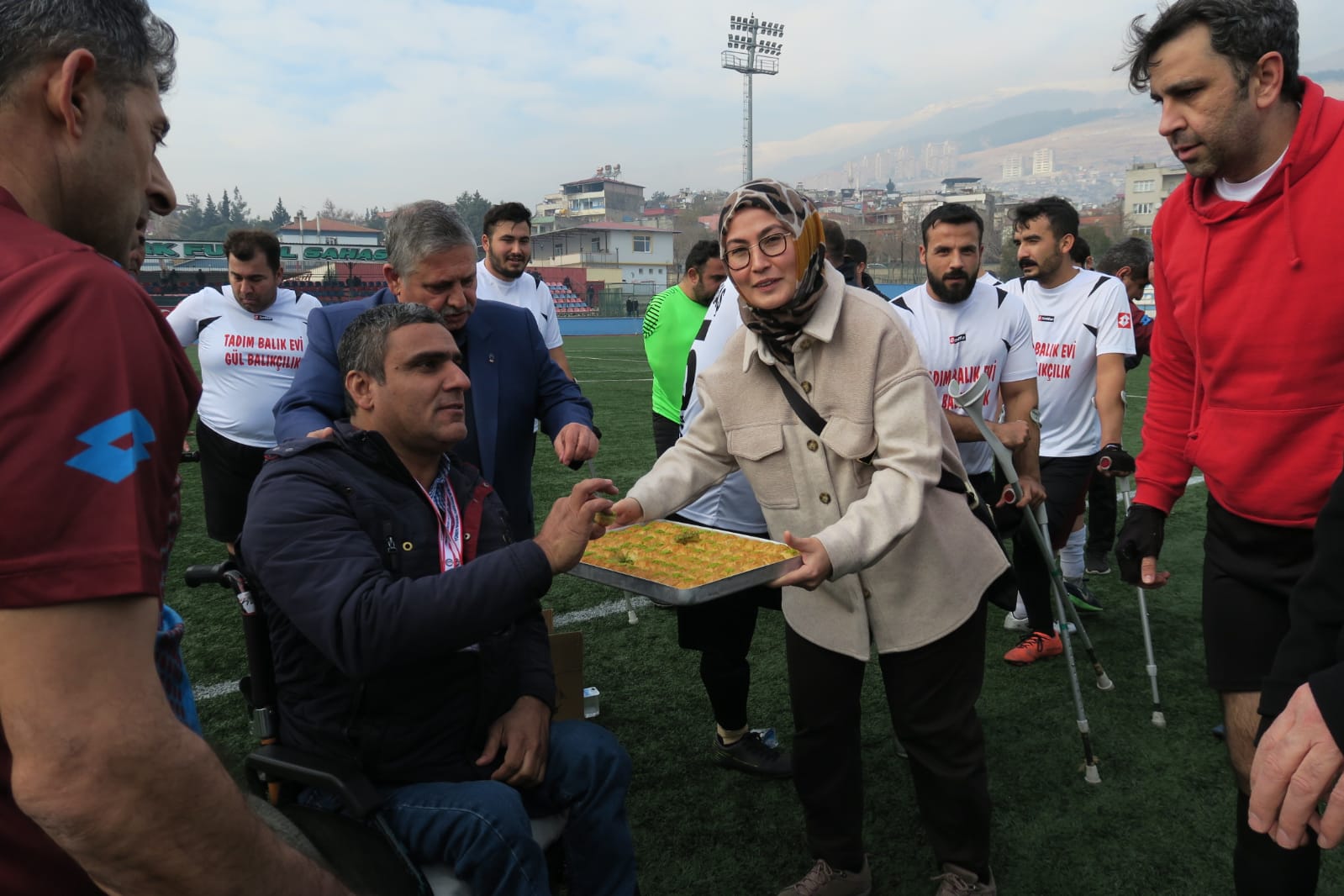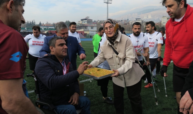 Kahramanmaraş Büyükşehir Belediyesi ekiplerince gerçekleştirilen anlamlı ziyaret başarı getirdi. Sağlık ve Sosyal Hizmetler Dairesi Engelli Başkanlığı Engelli ve Yaşlı Hizmetleri Şube Müdürlüğü koordinesindeki ekipler, Kahramanmaraş – Batman Ampute takımlarının karşılaşmasından önce bir moral ziyareti gerçekleştirdi. Ampute Futbol 2. Ligi’nde düzenlenen karşılaşmayı, Kahramanmaraşlı sporcular farkla kazandı. 7 – 0’lık galibiyetle neticelenen müsabaka sonrası hatıra fotoğrafı çekilirken, tatlı ikramında da bulunuldu. Alınan 3 puanlık galibiyetin ardından, Gebze Belediyesi takımını geçerek 17 puanla üçüncü sıraya oturan Kahramanmaraş Ampute takımı, bir üst lige çıkmayı hedefliyor.