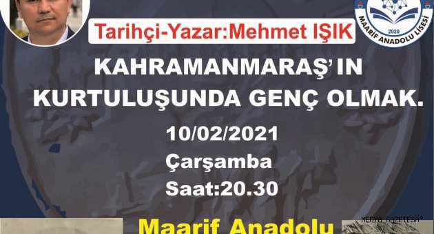Bu Şehitler Diyarı, İşte bu yer Maraş’tır.”KEÇELİ daha sonra Tarihçi-Yazar Mehmet IŞIK ‘ın özgeçmişi hakkında bilgi verdi.Program daha sonra Okul Müdürü İbrahim Halil Kaymaz’ın selamlama konuşması ile devam etti. Kaymaz özetle şunları söyledi:“2004 yılında lisans eğitimi için Gaziantep’ten Kahramanmaraş’a geldiğimde “çete bayramı yaklaşıyor” dediklerinde ne olduğunu anlamamıştım. Biz üniversite öğrencileri çetelerin daha sonra sokaklarda davul-zurna ve silahlarla dolaştıklarını gördük. Biraz tedirgin olduk. Yerel esnaf; “Korkmayın korkmayın çetelerden korkulmaz. Ancak onların varlığından güven duyulur.” dediler. Şuna inanıyorum: “Gaziantep, Şanlıurfa ve Kahramanmaraş’ın kurtuluşu bir noktada tüm Türkiye’nin ve Anadolu’nun kurtuluşuna vesile olmuştur.” Bu vesile ile programımıza teşrif eden bütün katılımcılara teşekkür ederim. Hassaseten Mehmet IŞIK hocama da bizleri kırmayıp davetimize icabet ettiği için minnettar olduğumuzu ifade ederim.” Konuşmacı Mehmet IŞIK; programa davet edildiği için teşekkür edip, Kahramanmaraş işgali ve Kahramanmaraş’ın işgalden kurtuluşu hakkında önemli bilgiler verdi. Işık konuşmasına neden Maraş, neden Antep, neden Urfa sorusu ile başladı. Ve bunu şöyle açıkladı: “Fransa ile İngiltere’nin arasında gizli antlaşma ile Çukurova Bölgesi Fransızlara bırakılmıştır. Çünkü İngilizler daha önce Mısır’ı işgal ettiler ve buradan pamuk hammadde ihtiyaçlarını karşıladılar. Hammaddeye ihtiyaçları kalmadığı için Çukurova Bölgesi’ni de Fransızlara bıraktılar. Daha sonra İngilizler MUSUL-KERKÜK petrol bölgesi karşılığında Antep, Maraş, Urfa bölgelerini Fransızlara bırakırlar. İngilizler işgal ettikleri yerlerin kimliği ile oynarlar. Tapu, nüfus ve müzeleri yağmalarlar. Kimliksiz bir toplum inşa etmek için çalışırlar. Bu coğrafya, Amik Ovası, Kudüs’ten başlayıp Ahir Dağı’na kadar geniş ve zengin bir coğrafya Anadolu’nun kapısı demektir. Fransızlar, maalesef emelleri için Maraş’ta bulunan 21000 Ermeni nüfusu kullandılar. Sekiz ay İngiliz işgalinde Maraş’ta önemli olaylar yaşanmadı. Ermeniler tehcir olayından dolayı Türkleri suçlamışlardır. Maraş en az Ermenin tehcir edildiği yerdir.Maraş’a Fransızların geleceği öğrenildiğinde Maraşlı İngilizlere gösterdiği kibarlığı Fransızlara göstermemiştir. Bunun gerekçesi Fransızlar Cezayir’de ve Tunus’ta milyonlarca kişiyi katletmişlerdir. Maraşlılar bunu bildiği için hazırlık yaptılar. 29 Ekim günü Fransızlar Maraş’a giriş yaptılar. Fransızları Maraş’ta Ermeniler ve bazı Türk Müslüman aileler de karşıladılar. Ermeniler “Yaşasın Fransa, Yaşasın Ermenistan, Yaşasın Kilikya Ermeni Krallığı, Kahrolsun Türkler, Kahrolsun Türklerin Padişahı “şeklinde bağırmaya başladılar. Fransızlar 1900 kişi olarak şehre geldiler. Bunlar dışında Beyrut’ta yetiştirilmiş 2000’e yakın Ermeni Lejyoner Birliği de vardı. Amaç Türk nüfusunu katlederek Ermeni nüfusuna eşitlemek. İleride bir oylama yapılırsa Ermeni nüfusun Türklerden daha çok olduğunu ileri sürerek bir Ermeni devletine zemin hazırlamaktı.İşgalden bir gün sonra Ermeniler Fransız kıyafetleri giyerek Uzunoluk’ta hamamdan çıkan kadınlara saldırıyorlar. “Burası artık Fransız yurdudur. Burada böyle peçeyle çarşafla gezemezsiniz ”derler. Ermeniler burada Fransız kıyafetleri giyerek Fransızlarla Türkleri karşı karşıya getirirler. Zira “Türkler İngilizler gibi Fransızlarla da düşman olmazlarsa biz Ermeni devleti kuramayız” diye düşünürler. Fatma Hanım “İçinizde bir Müslüman, Allah korkusu olan biri yok mu? Bizim iffetimize namusumuza el uzatıyorlar” diye vaveyla koparır. Bu olaydan sonra işte Maraş’ın gençleri ortaya çıkmaya başlar. İlk tepkiyi 17 yaşında Çakmakçı Sait “Kırarım sizin elinizi ”diyerek düşman askerlerine saldırır orada şehit edilir. Bunun üzerine Gaffar Kabuloğlu Osman, Sütçü İmam ayağa kalkar. Sütçü İmam elindeki silahla ateş eder ve Fransız kıyafetli Ermenileri öldürür. Sütçü İmam’ın attığı bu kurşun Fransızların karizmasını yerle bir eder. Bundan sonra Maraş’ta olaylar daha şiddetli geçer. Sütçü İmam korkup kaçmaz. Öyle bir şey yoktur. Bertiz’in Maksutlu köyüne gider ve orada Bayazıdlı Muharrem Beyin çetesine dahil olur ve savaşmaya devam eder. Fransızlar kapı kapı arayıp Sütçü İmam’ı bulamayınca yakınında kim varsa öldürmeye, zarar vermeye başlarlar. Nasuh Oğlu Mehmet’i, 19 yaşında sırtından bıçaklayıp hükümet konağının önüne atarlar. O gece bir kişiyi daha, Tiyeklioğlu Kadir’i (Sütçü İmam’ın dayısının oğlu) 21 yaşında işkence ederek öldürürler. Hükümet konağının önüne atarlar. Maraşlılar, “bunun fotoğrafını çekelim dünyaya Fransızların işkenceci olduklarını gösterelim” derler. Fakat o dönemin korkak hükümeti olan Mutasarrıf Ata Efendi, “başım belaya girmesin” diye müsaade etmez.Tarihçi Yazar Mehmet IŞIK sözlerine şöyle devam etti: “Bu olaylar üzerine Kayabaşı Mahalle’sinde zengin bazı aileler toplanıp bir teşkilat kurmalıyız demeye başlarlar. Şekerli Mahallesi’nde ise gençler toplanmaya başlarlar. Bu gençlerin başında Tapucu Faik, Evliya Efendi gibi cevval delikanlılar gelir.Sütçü İmam Olayı, Maraş’ta İstiklal mücadelesinin il kıvılcımı olur. Fakat bu olaydan sonra Fransızların desteğini alan Ermeniler, silahlanmaya başlar. Zeytun, Fırnız, Fındıcak ve Kişifli gibi Ermeni nüfusun yoğun olduğu bölgelerden şehre gelen Ermeni çeteler, şehrin dışındaki ıssız yerlerde halka saldırmaya, geceleri sokaklarda Türklere ateş etmeye başlarlar. Bir müddet sonra