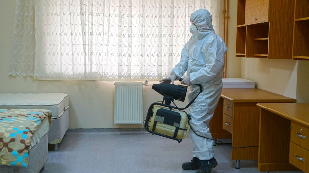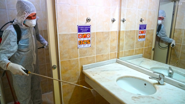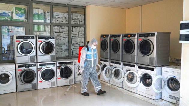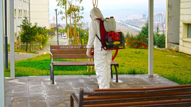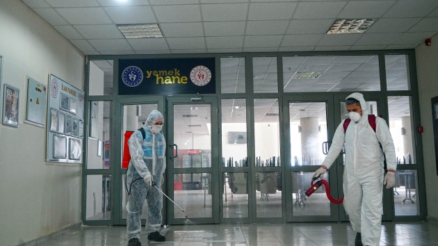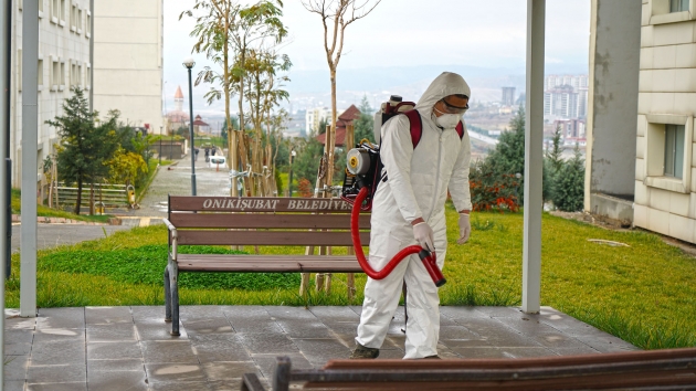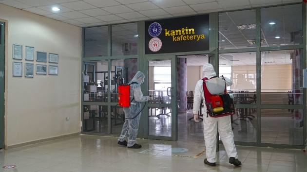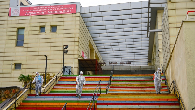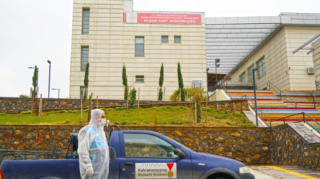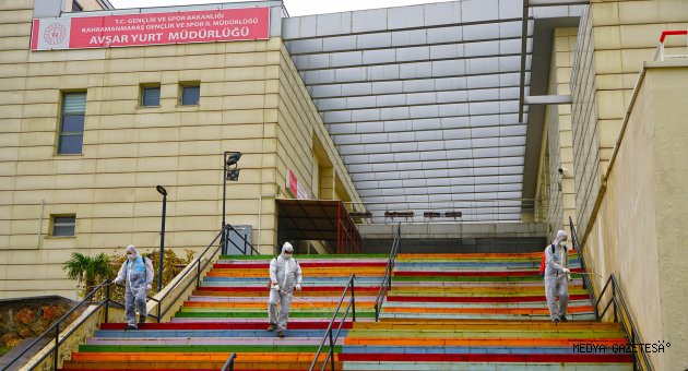 Kahramanmaraş Büyükşehir Belediyesi Covid-19 salgınıyla mücadele kapsamındaki dezenfeksiyon çalışmalarına aralıksız devam ediyor. Çevre Koruma ve Kontrol Dairesi Başkanlığı tarafından yürütülen çalışmalarda, sağlıkçılar, filyasyon ekipleri ve karantinada kalacak vatandaşlara tahsis edilen Kahramanmaraş Sütçü İmam Üniversitesi Avşar Yurdu’nda yer alan, odalar, sosyal ve ortak alanlarda dezenfeksiyon uygulaması gerçekleştirildi. Toplamda 4 blok ve 1 idari binadan oluşan yurtta; oda, tuvalet ve banyoların yanı sıra, yemekhane, asansör ve çamaşırhane gibi ortak alanlar da dezenfekte edildi.