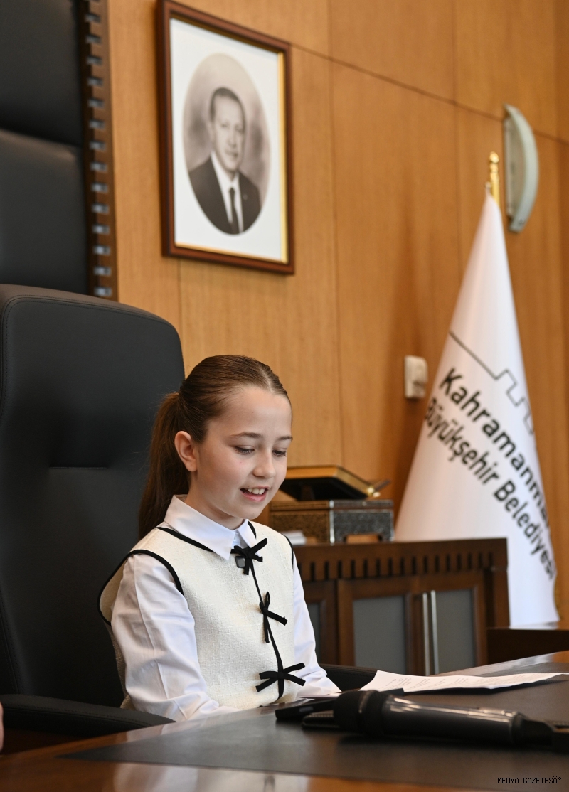 Büyükşehir Belediye Başkanı Fırat Görgel, “Bu anlamlı gün vesilesiyle geleceğimizin teminatı olan evlatlarımıza duyduğumuz güveni bir kez daha göstermek istedik ve makamımızı kıymetli yavrumuz Erva Zehra’ya emanet ettik. Çocuklarımızın gözlerindeki umut, heyecan ve hayaller, bizlere sorumluluğumuzu bir kez daha hatırlatıyor. Onlara daha güzel, daha güvenli ve daha yaşanabilir bir şehir bırakmak için var gücümüzle çalışmaya devam edeceğiz. Ancak bu bayramı ne yazık ki buruk bir şekilde idrak ediyoruz. Geçtiğimiz günlerde yaşanan menfur saldırı hepimizin yüreğini derinden yaraladı. Bu elim olayda hayatını kaybeden kıymetli öğretmenimiz Ayla hocamıza ve evlatlarımıza bir kez daha Allah’tan rahmet diliyorum. Milletimizin başı sağ olsun. Bu duygu ve düşüncelerle, başta Kahramanmaraşlı çocuklarımız olmak üzere tüm evlatlarımızın 23 Nisan Ulusal Egemenlik ve Çocuk Bayramı’nı yürekten kutluyor, sağlık, mutluluk ve başarı dolu bir gelecek diliyorum” ifadelerini kullandı.