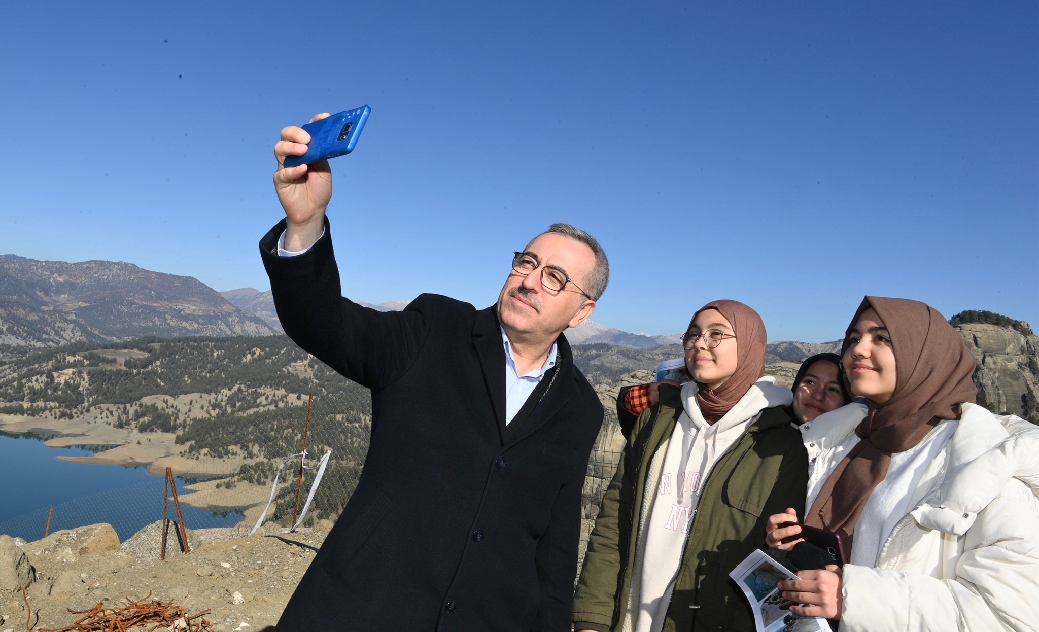 Ali Kayası’nda gençlerle bir araya gelen Başkan Hayrettin Güngör, “Kahramanmaraş’ımızın çok önemli doğal güzellikleri var. Ali Kayası da bunlardan bir tanesi. Bu alanda hayata geçirdiğimiz Ali Kayası Cam Teras ve Turizm Tesisleri’nin temelini attık ve çalışmalarımız tüm hızıyla devam ediyor” dedi.Kahramanmaraş Büyükşehir Belediye Başkanı Hayrettin Güngör, geçtiğimiz günlerde Türkiye Gençlik Vakfı (TÜGVA) İl Temsilciliği tarafından düzenlenen ‘Kalbin Reçetesi’ konulu söyleşi etkinliğinde verdiği söz üzerine bugün Ali Kayası’nda gençlerle bir araya geldi. TÜGVA Kahramanmaraş İl Temsilcisi Furkan Seyithanoğlu, öğretmenler ve çok sayıda öğrencinin yer aldığı programda gençlerle bolca muhabbet eden Başkan Hayrettin Güngör, Ali Kayası Cam Teras ve Turizm Tesisleri projesine ilişkin bilgiler de aktardı. Gençlerin sorularını da büyük bir samimiyetle yanıtlayan Başkan Hayrettin Güngör, programa katılım sağlayan herkese teşekkür etti.Çok Güzel Doğal Mekânlara SahibizDüzenlenen programda gençlere Ali Kayası Cam Teras projesine ilişkin bilgiler aktaran Başkan Güngör, “Bugün ağırlıklı olarak ortaokul ve lise son sınıf öğrencilerimizle bir araya geldik ancak programımız devam edecek. İnşallah düzenli olarak gerçekleştireceğimiz bu etkinliklerle tüm gençlerimizle bir araya gelmeye gayret edeceğiz. Davetimize icabet eden tüm gençlerimize teşekkür ediyorum. Kahramanmaraş’ımız birçok şehre nasip olmayacak çok güzel alanlara sahip. Ali Kayası da bunlardan bir tanesi. Bu alanda hayata geçirdiğimiz Ali Kayası Cam Teras ve Turizm Tesisleri’nin temelini attık ve çalışmalarımız tüm hızıyla devam ediyor. İnşallah Nisan ayında bu mekânda çalışmalarımızı tamamlayarak cam teras ve yeme içme alanlarımızı ziyarete açacağız” dedi.Turizm Alanlarının Cazibesi ArtıyorTurizm alanlarında devam eden ve planlanan yatırımlardan bahseden Başkan Hayrettin Güngör, “Ali Kayası Cam Teras ve Turizm Tesisleri de Kahramanmaraş’ımızın turizm potansiyelinin artmasına önemli katkı sağlayacaktır. Bölgenin en önemli sağlık turizm tesislerinden birisi de Ilıca. Oranın da yolunu yeniledik. Ilıca’ya bir de otel ve kongre merkezi kazandıracağız. Yeşilgöz, bizim en güzel doğal miraslarımızdan bir tanesi. Çevre düzenlemesini tamamladık ve ikinci etap çalışmalarımızı başlattık. Yeni bir yeme içme mekânı kazandırıyoruz. Fırnız’ın da tahsisini Tarım ve Orman Bakanlığı’ndan alıyoruz. Ulaşımı, yeme içme alanları, peyzajı ve sosyal donatılarıyla orayı da baştan uca yenileyeceğiz” ifadelerini kullandı.Yeni Yılın Hayırlı Olmasını DiliyorumYeni yıla ilişkin iyi dileklerini de belirten Büyükşehir Belediye Başkanı Hayrettin Güngör, “Bugün 2022’nin son günü. Yeni yılın şehrimize, ülkemize ve tüm insanlığa hayır getirmesini temenni ediyorum. 2023 yılında da yatırımlarımızı artırarak sürdüreceğiz” dedi. Program, hatıra fotoğrafı çekimiyle noktalandı.