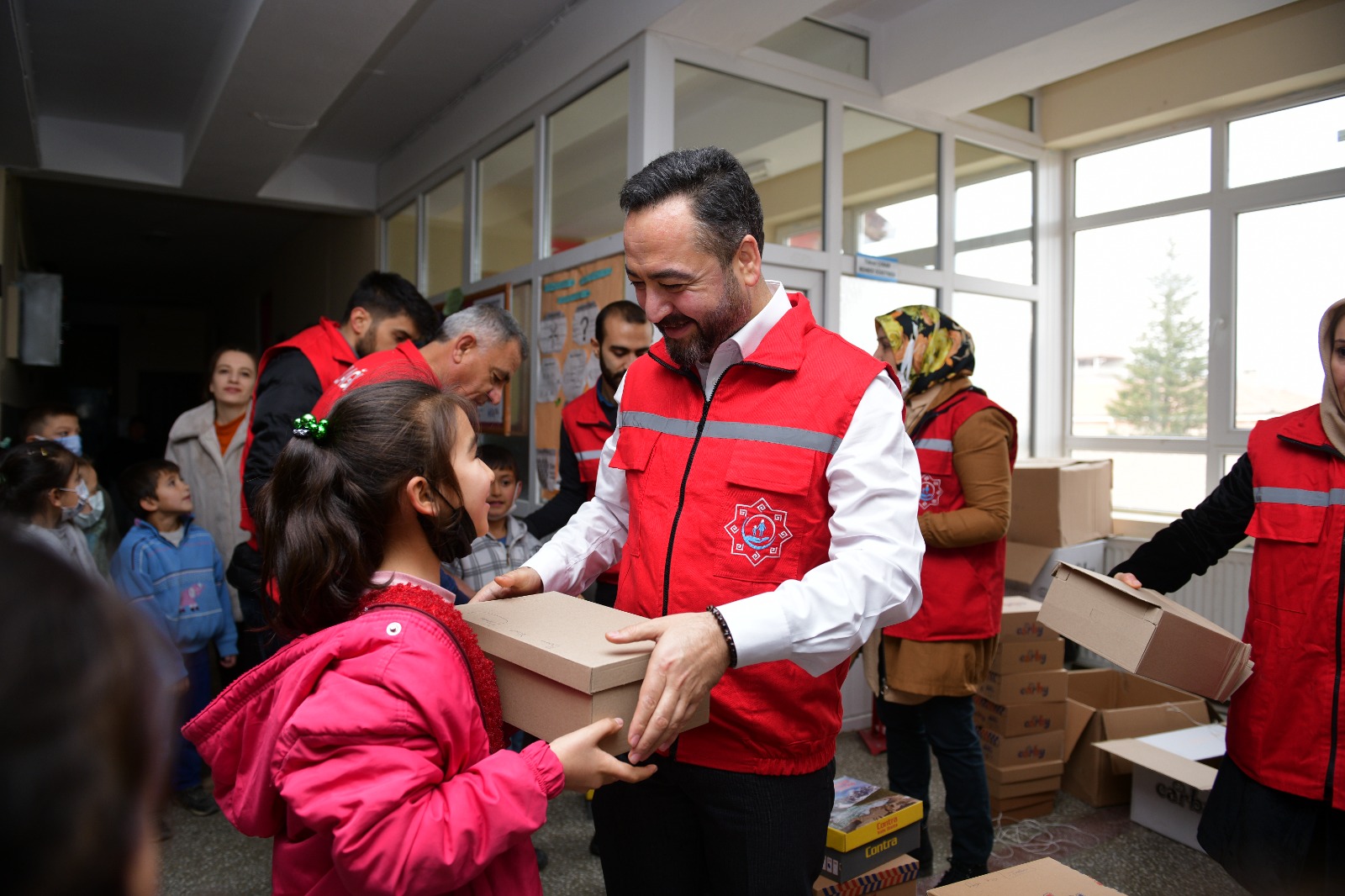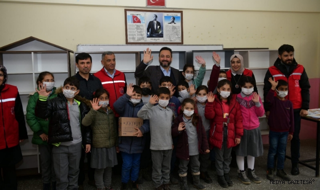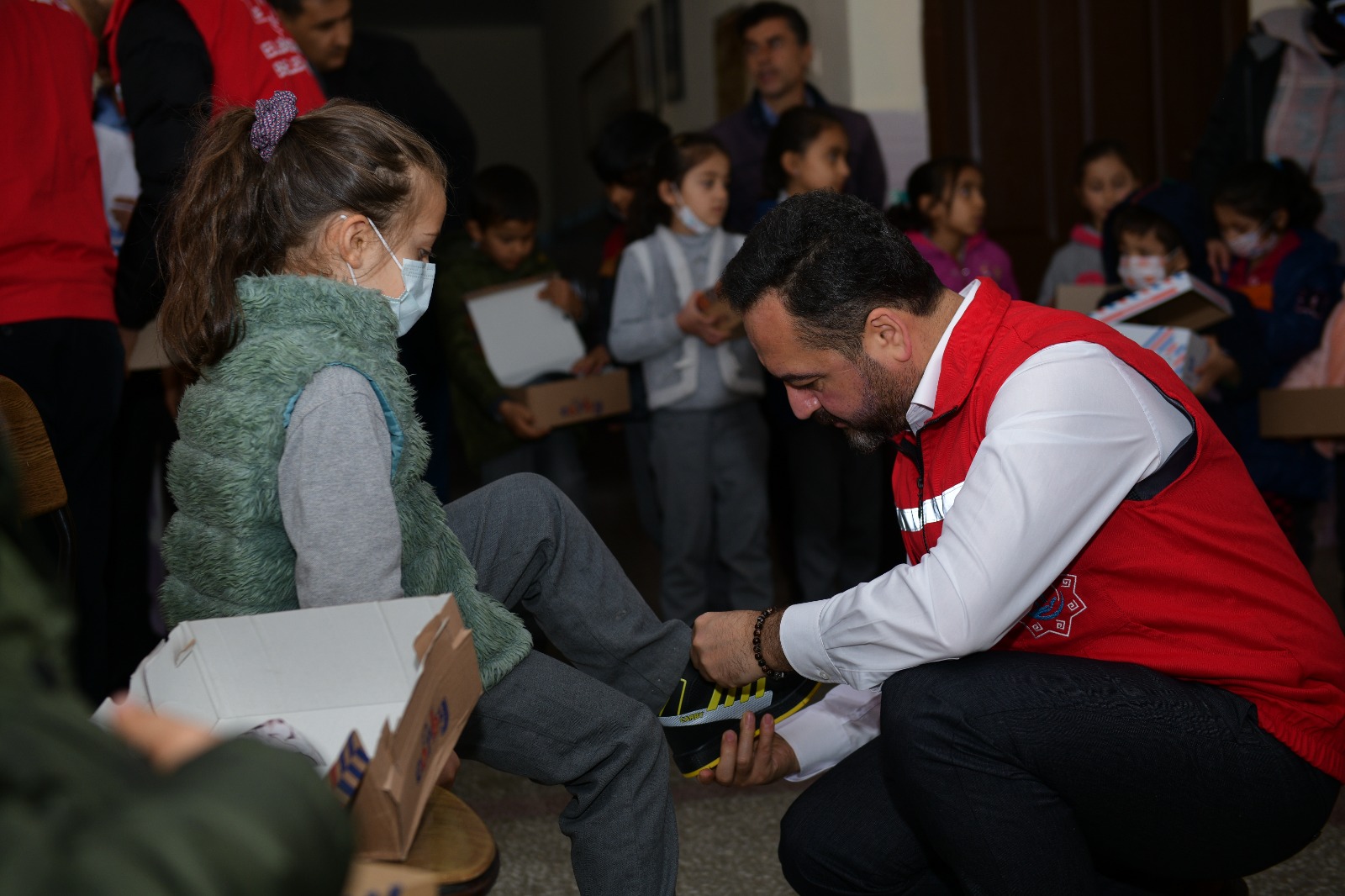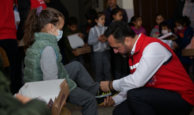 Platform gönüllüleriyle beraber okulları ziyaret eden Belediye Başkanı Mehmet Gürbüz öğrencilere bot ve monttan oluşan yeni yıl hediyesi verdi.