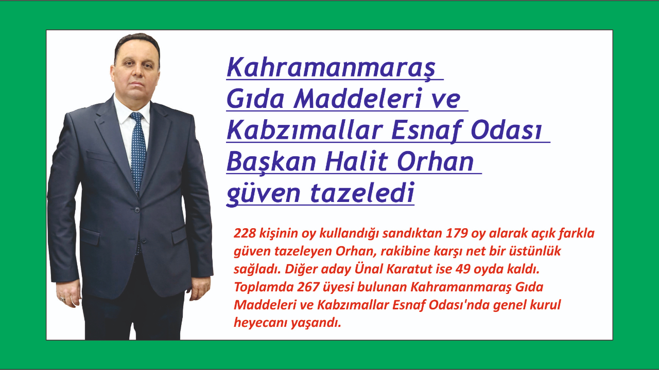 Halit Orhan’ın yeniden başkanlığa seçilmesiyle birlikte Kahramanmaraş Gıda Maddeleri ve Kabzımallar Esnaf Odası’nda istikrarın devam edeceği, yeni dönemde esnafın taleplerine yönelik çalışmaların hız kazanacağı ifade ediliyor.