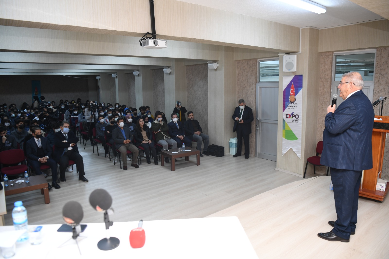 Geçtiğimiz aylarda başta esnaf odaları ve yönetimleri olmak üzere, kentimizdeki sivil toplum kuruluşları, dernekler, tüm ilçe belediyeleri ve yönetimlerine EXPO 2023 tanıtımı yapılmıştı. Şimdi ise ‘Kariyer Günleri’ kapsamında merkezde bulunan lise öğrencileriyle buluşan Başkan Mahçiçek TOBB Fen Lisesi ve Özel Final Akademi Lisesi öğrencilerine EXPO 2023’ün nasıl yapılacağını, içinde neler olduğunu, şehrimize neler katacağını ve şehrimizin nasıl marka değeri kazanacağını anlattı.