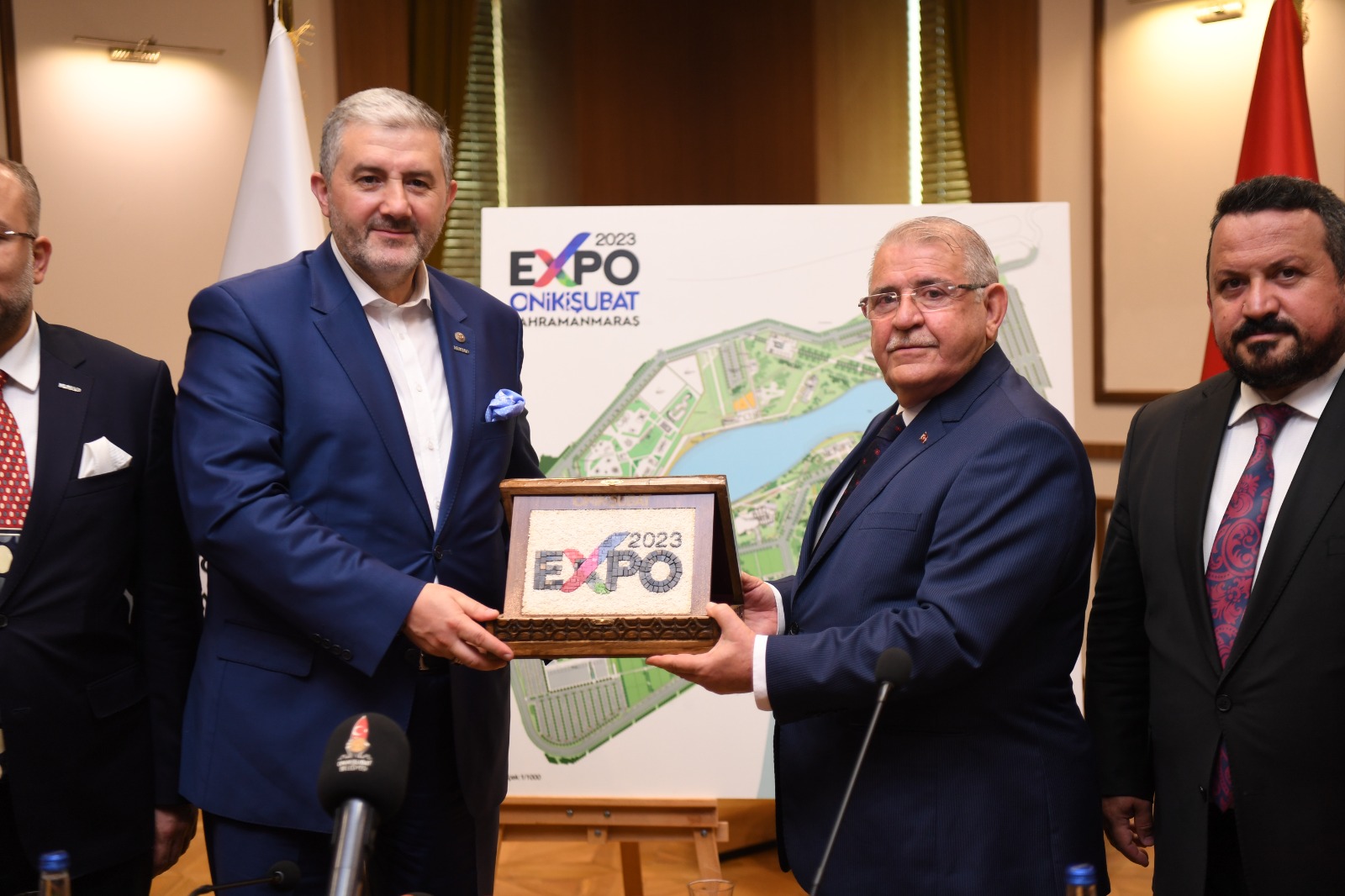 EXPO 2023 Rekreasyon alanının çevresinde başlattığımız imar planlama ve baraj göleti ıslah çalışmalarımız ile şehrimize yeni bir yaşam alanı daha kazandırmış olacağız.Şu ana kadar 24 ülke EXPO 2023 projesine katılacağını bildirmiş. Açılışa kadar 50 ülkenin katılım yapmasını bekliyoruz. Kahramanmaraş’ı dünyaya taşıyacak, tanınırlığını artıracak, ülkemize de büyük katma değerler sağlayacak bir proje.Bir kez daha Sayın Başkanımıza ve Yönetim Kuruluna bizleri onurlandırdıkları için teşekkür ediyorum.”MÜSİAD Genel Başkanı Abdurrahman Kaan ise şu şekilde konuştu.“Değerli Başkanımızı ziyaret etmekten biz de çok memnun olduk. Genel Başkan olarak son 1 yılda 65. ilimize geliyoruz. Kahramanmaraş’a farklı bakışımız var, buraya ikinci defa geliyoruz. Kahramanmaraş bazı sektörler açısından ticarette öncü olması ve çevre illere de model olması bakımından önemsediğimiz şehirlerimizden.Başkanımız EXPO 2023’ün tanıtımını yaptı. Bizler de MÜSİAD olarak iki yılda bir MÜSİAD EXPO düzenliyoruz. Dünyada çok geniş bir ağa sahibiz ve MÜSİAD’ın ağırlığını EXPO 2023’e de taşıyacağız, elimizden geleni de yapmaya hazırız.”MÜSİAD Heyetine Hizmet Binasını gezdirerek yatırım ve projelerinden bahseden Başkan Mahçiçek, program sonrasında MÜSİAD Başkanına EXPO 2023 yazılı mozaik tablo hediye etti.EXPO 2023 ile ilgili detaylı sunumun ardından çekilen hatıra fotoğrafları ve iyi dilek temennileri ile program noktalandı.
