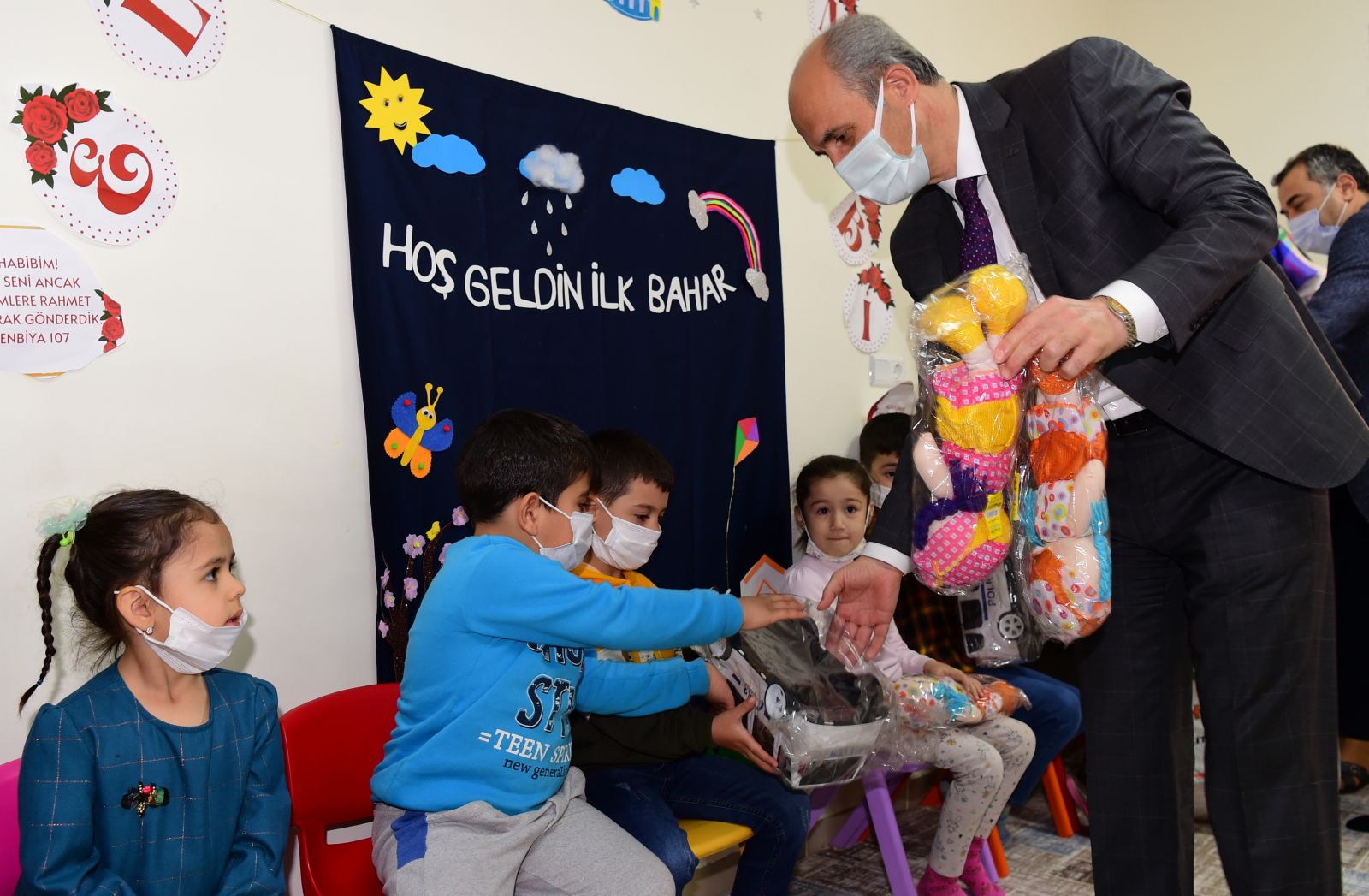 Dulkadiroğlu Belediye Başkanı Necati Okay, Divanlı Mahallesi’nde inşaatını tamamlayarak hizmete açtığı Kuran Kursu’nu ziyaret etti. Başkan Okay, sübyan mektebi olarak hizmet veren kursta eğitim gören öğrencilere hediyeler verdi.