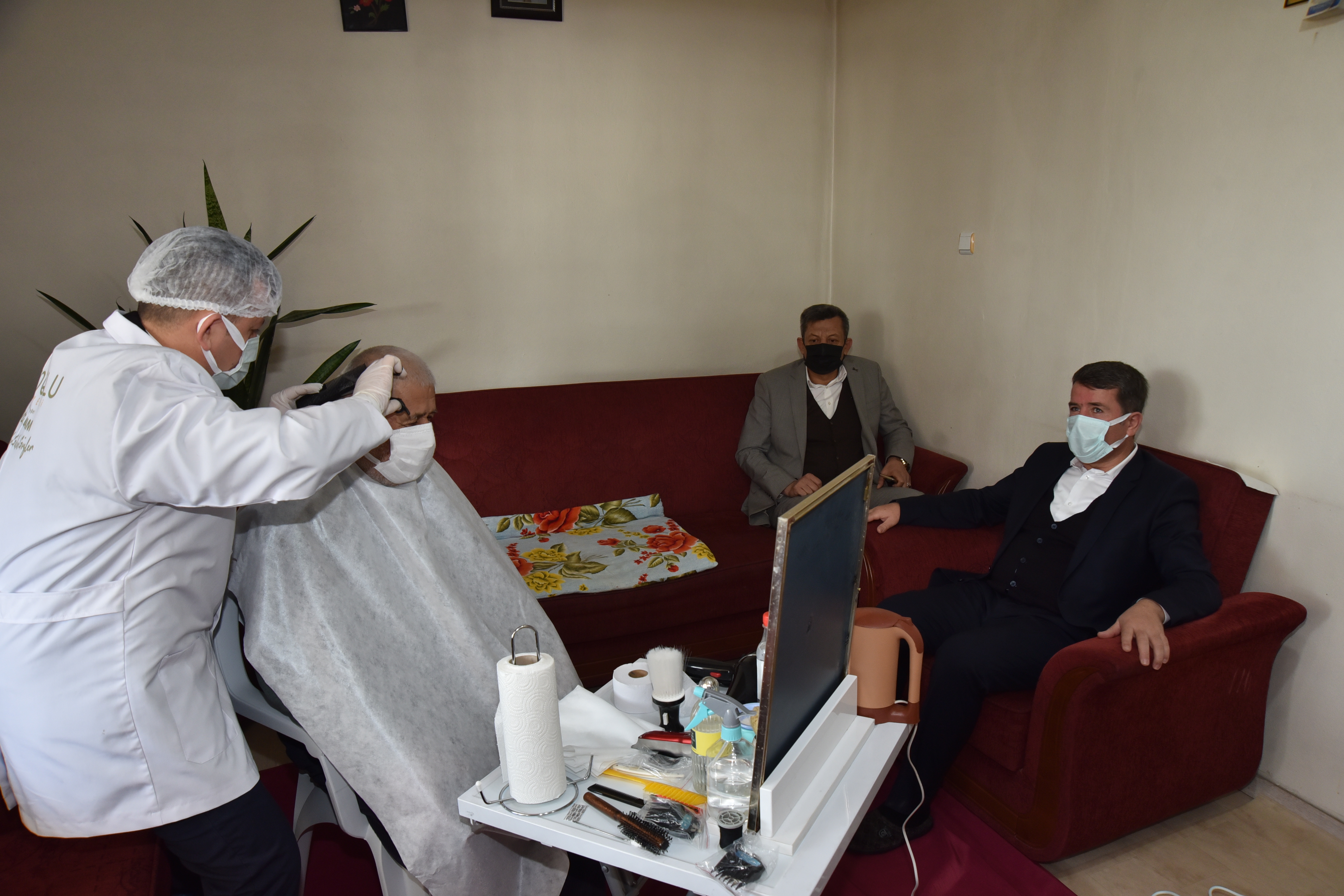 Özel olarak 'Alo evde bakım’ aracı dizayn eden Belediye, araç içerisine tüm malzemelerini fazlasıyla temin ediyor. Özel araçlarına binen işinin erbabı görevliler, talep eden vatandaşların evlerine verilen randevu saatine göre giderek ücretsiz olarak saç sakal ve kişisel bakımlarını yapıyorlar.