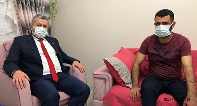Büyük Birlik Partisi (BBP) Genel Başkan Yardımcısı Mahmut Yardımcıoğlu, Kahramanmaraş'ta cinayet zanlısını gözaltına almak için gittiği otelde zanlının silahlı saldırısı sonucu yaralan polis memurunu evinde ziyaret etti.
