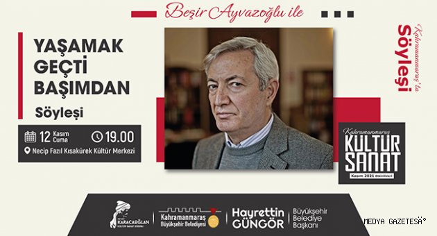 Kahramanmaraş Büyükşehir Belediyesi’nin düzenlediği Karacaoğlan Kültür Sanat Sezonu sanatseverleri buluşturmaya devam ediyor. Kasım ayı boyunca kadar birbirinden renkli 13 etkinliğin gerçekleştirileceği takvim kapsamında 12 Kasım Cuma günü (yarın) saat 19.00’da Beşir Ayvazoğlu ile söyleşi etkinliği düzenlenecek. Necip Fazıl Kısakürek Kültür Merkezi’nde gerçekleştirilecek etkinlikte, usta yazar ‘Yaşamak Geçti Başımdan’ temasını işleyecek. Kültür Spor ve Turizm Dairesi Başkanlığı tarafından yapılan açıklamada, düzenlenecek etkinliğe tüm vatandaşların davet edildiği bildirildi.
