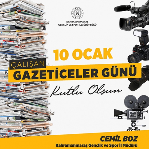 Tarafsız, doğru ve güvenilir haberin topluma ulaşması için gayret eden iletişim emekçisi gazetecilerimizin 10 Ocak Calisan Gazeteciler gününü kutluyorum.Cemil BOZGençlik ve Spor İl Müdürü