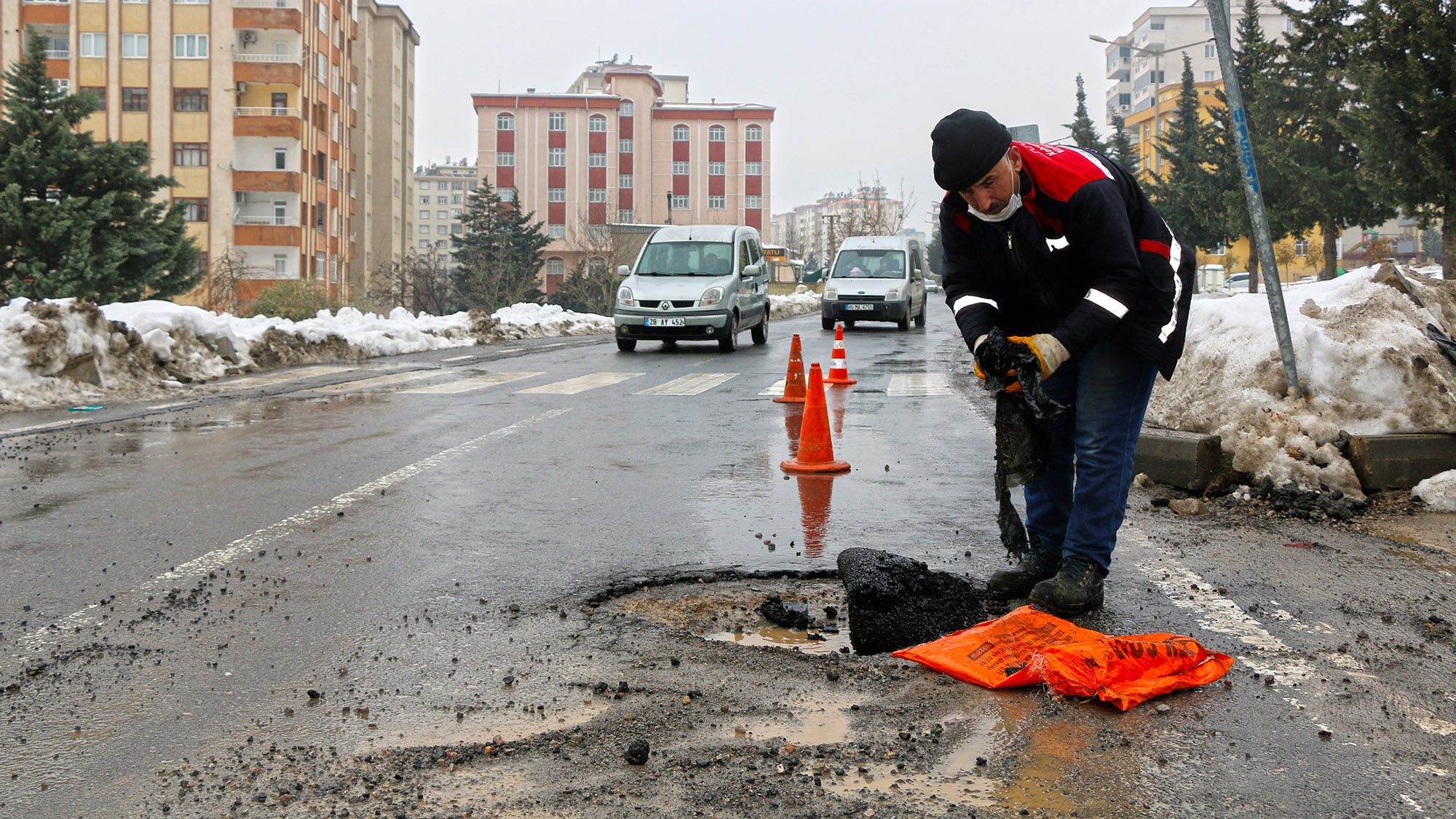 Kahramanmaraş Büyükşehir Belediyesi, şehir genelinde yol bakım ve onarım çalışmalarını aralıksız sürdürüyor. Kış şartlarıyla mücadele eden Büyükşehir Belediyesi diğer taraftan şehir genelinde etkili olan yağışlar nedeniyle deforme olan ana arter, bulvar, cadde, sokak ve kavşaklarda soğuk asfalt yama uygulaması gerçekleştiriyor. Fen İşleri Dairesi Başkanlığı koordinesindeki ekipler tarafından gerçekleştirilen çalışmalarda deforme olan ve ulaşıma engel teşkil eden yıpranmalar tespit ediliyor. Tespit edilen bölgelerde soğuk yama uygulaması gerçekleştirilerek deforme olan kısımlar onarılıyor.