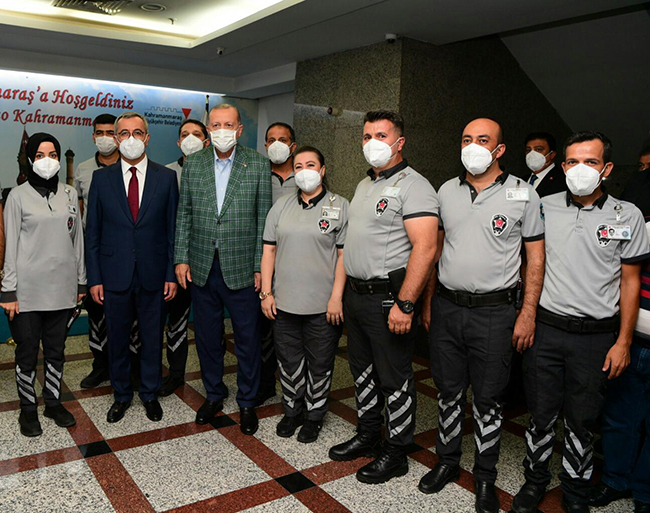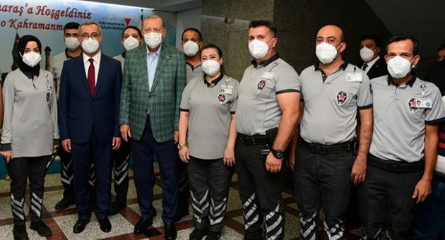Ziyaretin ardından çıkışta Cumhurbaşkanımız Recep Tayyip Erdoğan ve Kahramanmaraş Büyükşehir Belediye Başkanımız Hayrettin Güngör, Zabıta Dire Başkanlığında Güvenlik görevlileri ile bir hatıra fotoğrafı çekildi.