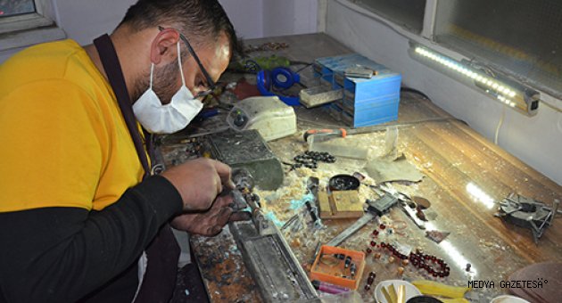 Yaklaşık 6 yıl öncesine kadar kuruyemiş satışı yapan bir iş yerinde tezgahtar olarak çalışan Demir, dedesinin koleksiyonundan etkilenerek tespih yapmaya karar verdi.Çalıştığı iş yerinden ayrılan ve ilçe merkezinde kendi atölyesini kuran Demir, dedesinin bilgi birikiminden de faydalanarak tespih üretmeye başladı.Demir, AA muhabirine yaptığı açıklamada, yaklaşık 6 yıl önce kurduğu atölyede aylık ortalama 100 tespih ürettiğini belirtti.Satın aldığı hammaddenin altı işlemden geçirilerek tespih haline getirildiğini dile getiren İsmail Demir, tespihlerin türüne göre bir veya iki günde yapıldığını söyledi.Demir, bu alanda önemli bir yol kat ettiğini belirterek, tespih imalatının sevgi ve sabır istediğini ifade etti.Dedesinin tespih meraklısı olduğunu ve ondan çok etkilendiğini belirten Demir, şunları kaydetti:"Dedemin çok güzel tespihleri vardı. Onlarla oynarken bende tespih sevgisi oluştu. Bu sevgiyi üretime dönüştürmeye karar verip kendi atölyemi kurdum ve üretime başladım. Bir tespih malzemesine göre 15 saat ile 24 saat arasında çalışma sonucu meydana geliyor. Tespihlerimizi yurt içinin yanı sıra, Almanya, İngiltere, Fransa ve Danimarka gibi Avrupa ülkelerinde yaşayan Türklere gönderiyoruz. İstanbul Kapalı Çarşı'daki satıcılara da gönderiyoruz."Ürettikleri tespihlerin malzemesine göre 300 ila 4 bin lira arasında alıcı bulduğunu anlatan Demir, satışların kış aylarında daha fazla olduğunu sözlerine ekledi.