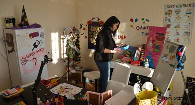 Dersliğe çevirdiği evinden yaptığı yayınlarla öğrencilere yabancı dili sevdiriyor