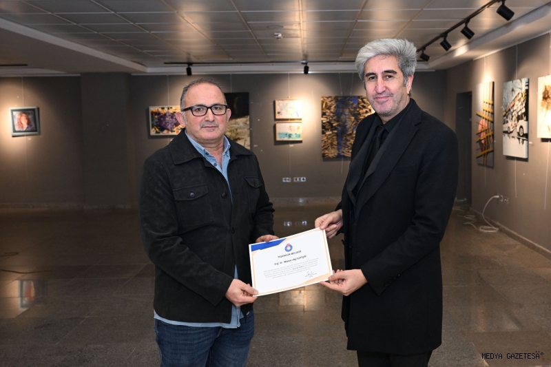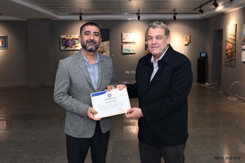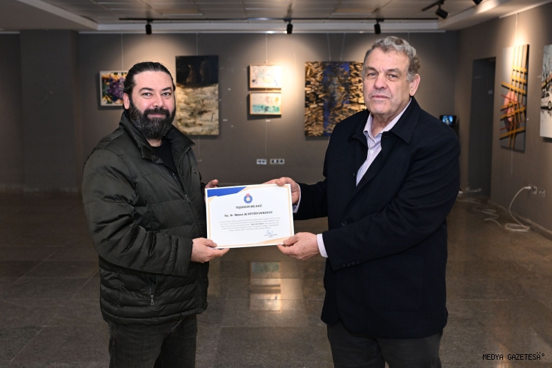 Açılış töreni, sergi küratörü ve seçici kurul üyelerine belge takdimi ve günün anısına çekilen hatıra fotoğrafı ile sona erdi.