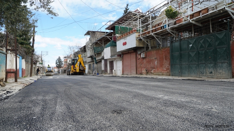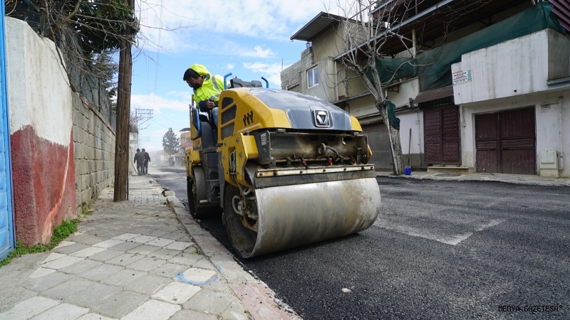 KASKİ, Dulkadiroğlu Namık Kemal Mahallesi 49023. Sokakta altyapı imalatlarının ardından sıcak asfalt serimini de tamamlıyor.