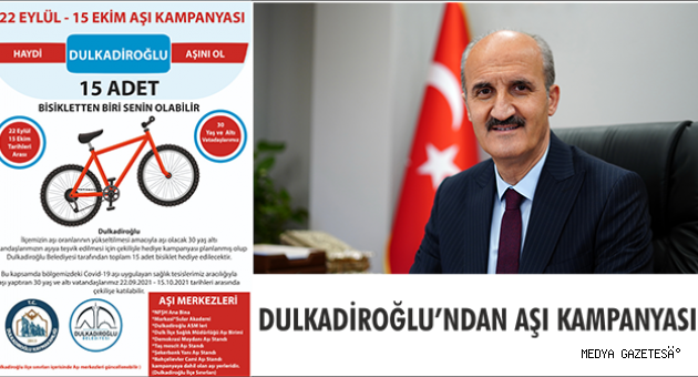 İlçe genelinde aşı oranını yükseltmek amacıyla kampanya başlatan Dulkadiroğlu Belediyesi ve Dulkadiroğlu Kaymakamlığı, aşı olan vatandaşlar arasından çekilişle 15 kişiye bisiklet hediye edeceğini duyurdu.