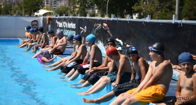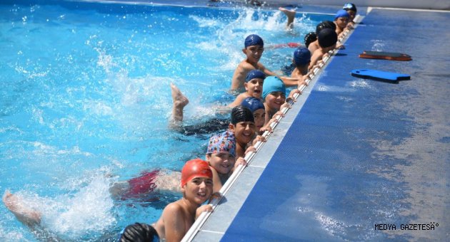 Elbistan Belediyesi'nin işbirliğinde açılan ücretsiz yüzme kursu