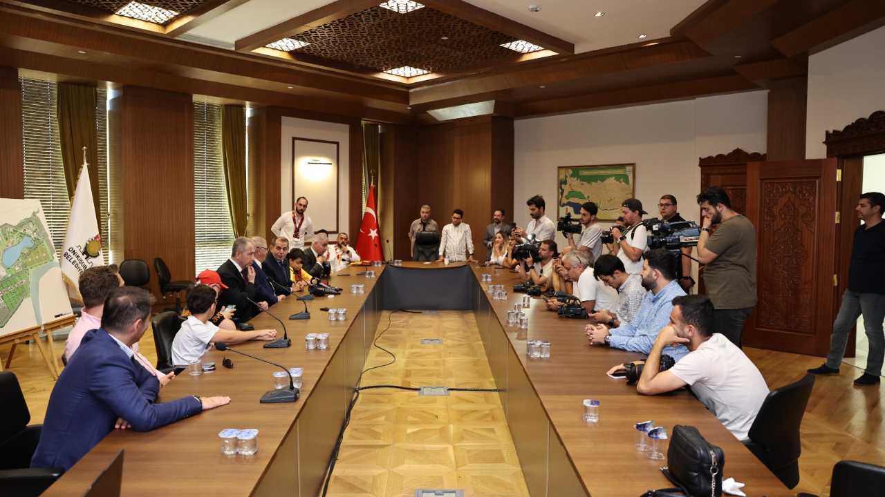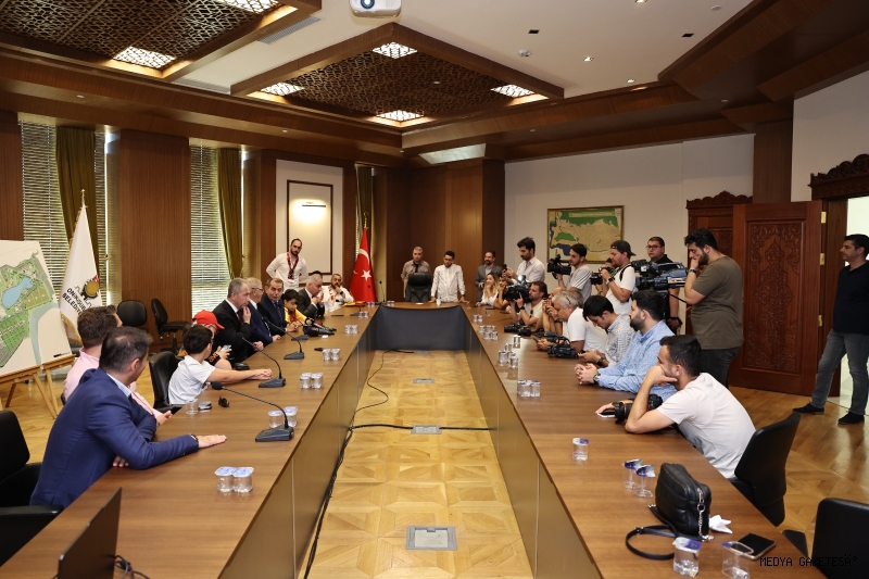 Özbek ve beraberindeki heyeti kapıda karşılayan Başkan Mahçiçek, misafirleriyle toplantı odasına geçerek, basın mensuplarına açıklamalarda bulundu.