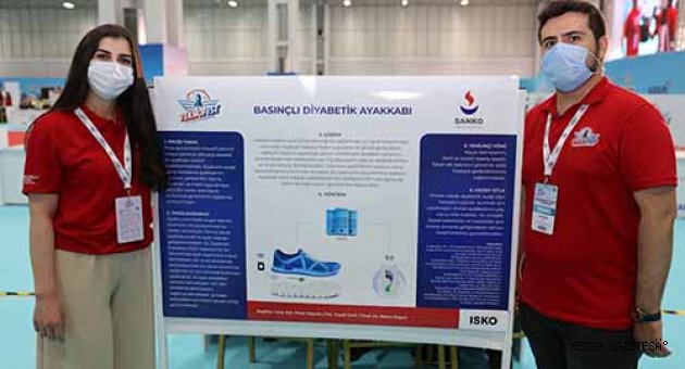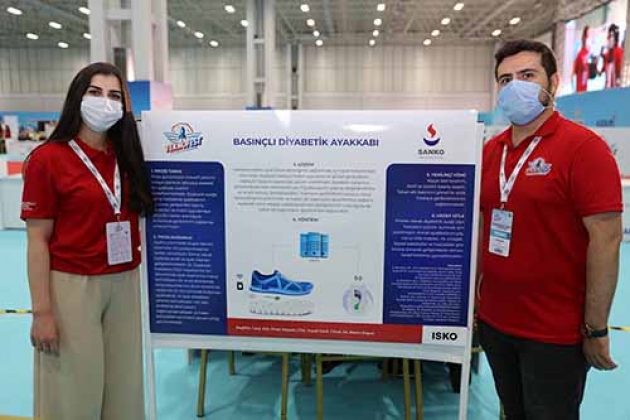 TEKNOFEST’in bu yılki akademik paydaşlarından olan SANKO Üniversitesi’nde öğrencilerin geliştirdiği “Giyilebilir EKG Tişörtü” ve “Basınçlı Diyabetik Ayakkabı” projeleri ilgi topladı.Gaziantep Ortadoğu Fuar Merkezi’nde düzenlenen TEKNOFEST’te SANKO Üniversitesi’nin İnsanlık Yararına Teknoloji Yarışması Sağlık Kategorisi’nde “Giyilebilir EKG Tişörtü” projesiyle “Stajyer Takımı”, “Basınçlı Diyabetik Ayakkabı” projesiyle “Pedifiz Takımı” finalde yarışıyor.Tıp Fakültesi 5’inci sınıf öğrencisi Buse Kaplan ile Merve Karaal ve Alper Kaplan’dan oluşan “Stajyer Takımı” Giyilebilir EKG Tişörtü, Lisansüstü Eğitim Enstitüsü Fizyoterapi ve Rehabilitasyon Tezli Yüksek Lisans Programı Öğrencileri Pınar Kuyulu ve Yusuf Cerit’in yer aldığı “Pedifiz Takımı” ise Basınçlı Diyabetik Ayakkabı projesiyle bilim arenasına katıldı.GİYİLEBİLİR TİŞÖRTLE KALBİN AKTİVİTELERİ TAKİP EDİLEBİLECEKÖğrencilerin geliştirdiği ‘Giyilebilir EKG Tişörtü’ ile kalbin elektriksel aktivitesinin değerlendirildiği MI, kalp kapak hastalıkları ve kandaki iyon değişimlerinin kalbe olan etkisi gözlemlenebilecek.Ecg modülü ile tam bir P Q R S T kalp atış dalgası elde edilip veri bluetooth iletişim yöntemiyle cep telefonlarına aktarılabiliyor. Cep telefonlarında geliştirilen uygulama kalpte gözlemlenen farklı dalgalanmaları tespit ederek geri bildirimde bulunuyor.Giyilebilir tişört ile yaşam koşullarına asgari boyutta etki eden cihaz ve gündelik hayatta rahatça giyip çıkarılacak kablosuz bir sağlık ürünü ile sorunlara çözüm üretiliyor. 100 saat üzeri veri kayıt özelliği ve yüksek doğruluk oranıyla holter cihazlarının piyasadaki yerini ‘Giyilebilir EKG Tişörtü’nün alması beklenirken kalp hastalıklarını erken tespit ederek ani kalp krizi ölüm oranlarını düşürebilecek bir ürün üretildi.BASINÇLI DİYABETİK AYAKKABIGünümüzün inovatif yönünü ortaya çıkararak teknoloji destekli bir ayakkabı üretiminin hedeflendiği ‘Basınçlı Diyabetik Ayakkabı’ projesiyle diyabetik ayağa sahip hastalarda ayakkabının tabanına yerleştirilen basınç sensörleri ve mobil uygulamaya aktarılan veriler aracılığıyla kullanıcıya geribildirim sağlanması hedefleniyor.Hastada sağlıklı ayak biyomekaniğinin sağlanması için ayak tabanındaki basınçları algılayıp hastaya mobil uygulama ile görsel geribildirim sağlayan tasarım sayesinde çözüm üretildi. Proje sayesinde, ayakkabı tabanına yerleştirilecek sensörlerin yeri fizyoterapistin yaptığı değerlendirme ve analiz sonucu belirleyecek. Ayrıca Ayakkabı içine uyarlanabilecek kompresörler aracılığıyla da taban altı basınçların düzeltilmesi sağlanabilecek.Havacılık, Uzay ve Teknoloji Festivali TEKNOFEST, 27 Eylül 2020 tarihine kadar sürecek.