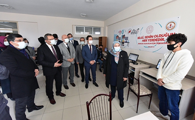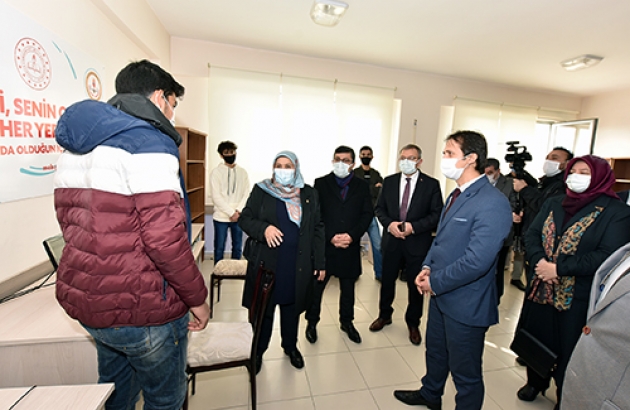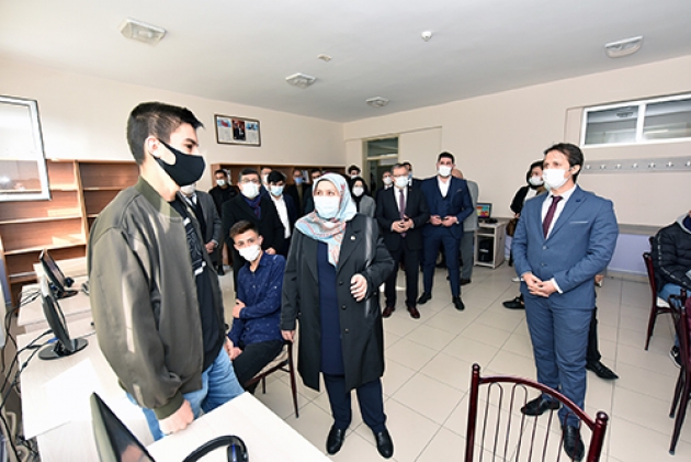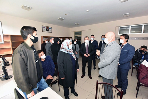 AK Parti Kahramanmaraş Milletvekili Habibe Öçal, beraberinde İlçe Kaymakamı Ümit Şeref Kayacan ve Belediye Başkanı Hüseyin Coşkun Aydın ile birlikte Göksun Anadolu İmam Hatip Lisesinde açılan EBA Destek Noktasını ziyaret ederek öğrencilerle sohbet etti.Öğrencilerden hedeflerini büyük tutmalarını ve iyi bir eğitimin ardından ülke yönetimine talip olmalarını isteyen Milletvekili Habibe Öçal, incelemelerinin ardından yaptığı açıklamada şunları kaydetti: “Bugün Göksun Belediyesi tarafından açılan EBA destek noktalarından birindeyiz. Pandemiden dolayı uzaktan eğitim noktasında öğrencilerimizin derslerine, eğitime erişilebilirlik noktasında elimizden geleni yapmaya çalışıyoruz. Burada bütün kurumlarımızla, yerel yönetimlerimizle birlikte biz öğrencilerimizin eğitimden geri kalmamaları noktasında elimizden gelen gayreti göstermekteyiz. Burada yine öğrencilerimizin kesintisiz eğitim alabilmeleri için internete erişimlerinin hızlandırılması amacı ile EBA destek noktamızı kurduk. Çocuklarımız burada eğitimlerini almaktalar. Onlara düşen derslerine sıkı sıkıya çalışmak, iyi bir eğitimin ardından ülke yönetimine talip olmaktır. Burada emeği geçen Belediye Başkanımız Hüseyin Coşkun Aydın’a çok teşekkür ediyorum. Gerçekten Göksun’da eğitime çok büyük destek vermekte. Aynı şekilde eğitimin kesintiye uğramaması için gayretli çalışmalarından dolayı ilçe Kaymakamımız ve diğer ilgililerde teşekkür ediyorum.”Göksun Belediyesinin eğitime desteğini sürdüreceğini belirten Belediye Başkanı Hüseyin Coşkun Aydın’da yaptığı açıklamada, “Uzaktan eğitim sürecinde Göksun Belediyesi olarak, ilçe milli eğitim müdürlüğü ile işbirliğine gidiyoruz. Bilgisayar ve interneti olmayan öğrencilerin derslerinden geri kalmaması için adeta bir seferberlik başlattık. İlçemiz kırsalında internet erişim sorunu yaşanan bölgelere mobil araçlarımızla EBA destek noktası oluşturduk. İlçe merkezimizde de yine bilgisayarı olmayan öğrencilerimiz için EBA destek sınıfları oluşturuyoruz. Amacımız öğrencilerimizin eğitimde geri kalmamalarıdır. Bu zor günlerde Göksun Belediyesinin bütün imkânları ile eğitime destek olmaya çalışıyoruz” ifadelerini kullandı.EBA destek sınıfında derse katılan öğrenciler de sağlanan imkânlardan dolayı memnuniyetlerini dile getirerek Başkan Aydın ve emeği geçenlere teşekkür ettiler.Milletvekili Öçal, daha sonra beraberindeki heyetle birlikte okul bünyesinde oluşturulan ve Milli Eğitim Bakanlığı Din Öğretimi Genel Müdürlüğü tarafından örnek gösterilen uygulama mescidini inceledi.