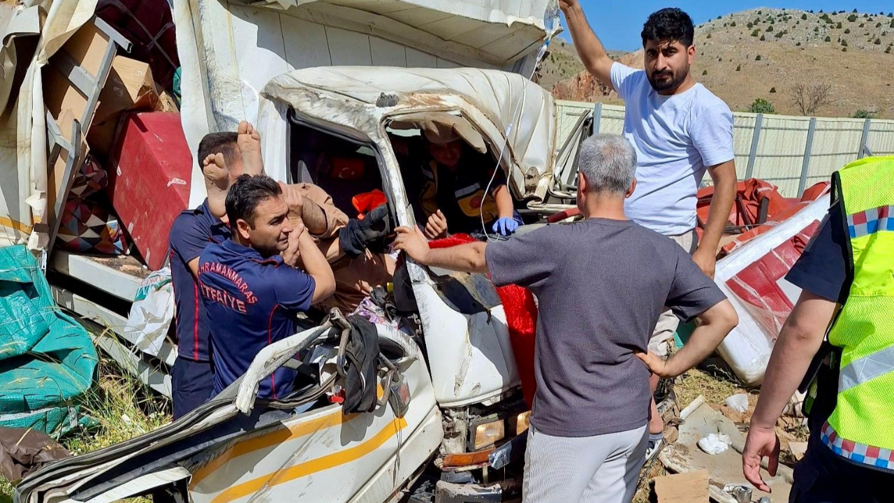 Göksun'da kamyonet paramparça oldu: 1 yaralı
