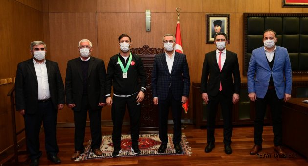 Kahramanmaraş Büyükşehir Belediye Başkanı Hayrettin Güngör, Sırbistan Belgrad’ta düzenlenen 2020 Dünya Güreş Şampiyonasında 2. olan Kahramanmaraşlı Milli Güreşçi Haydar Yavuz’u makamında ağırladı. Gençlik ve Spor İl Müdürü Cemil Boz, Kahramanmaraş Güreş Eğitim Merkezi Müdürü Şahin Hopur, Güreş Federasyonu İl Temsilcisi Ali Demir’in de yer aldığı ziyarette konuşan Büyükşehir Belediye Başkanı Hayrettin Güngör,  milli güreşçi Yavuz’u tebrik etti. Başkan Güngör, “Haydar Yavuz turnuvada gururumuz oldu. Sporcumuzu tebrik ediyor, başarılarının devamını diliyorum” ifadelerini kullandı.