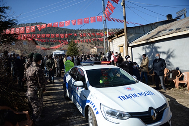 Göksun Devlet Hastanesi morgundan alınan şehit Özdemir'in naaşı, helallik alınmak üzere Çağlayan Mahallesi'ndeki baba ocağına götürüldü.