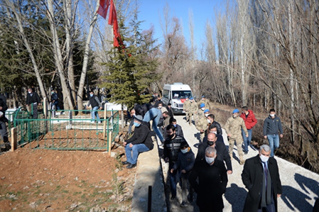 Şehit Özdemir'in cenazesi daha sonra törenin yapılacağı mahalle mezarlığına getirildi.