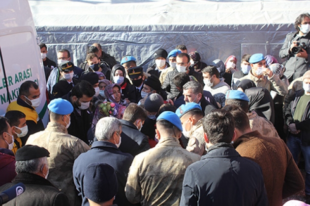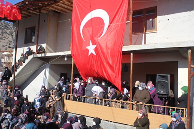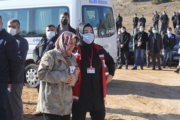 Burada, şehidin babası Bayram ile annesi Kamer Özdemir, oğlunun Türk bayrağına sarılı tabutuna sarılarak gözyaşı döktü.