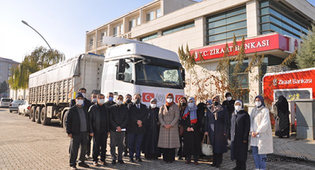 Daha sonra, Büyükşehir Belediyesi ve kentteki sivil toplum kuruluşlarının desteğiyle toplanan un, kömür, soba, gıda ve tıbbi malzemeleri taşıyan 7 tır, Suriye'ye uğurlandı.