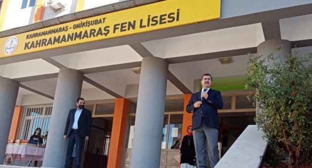 Okul ziyaretlerini sürdüren İl Millî Eğitim Müdürümüz Yusuf Kahraman, günün ilk ders zilinde Kahramanmaraş Fen Lisesi öğrenci ve öğretmenleri ile bir araya geldi. İstiklâl Marşı töreninde öğrencilerimize seslenen İl Müdürümüz Yusuf Kahraman, "Bakanlığımızın okulları açmadaki kararlı duruşu sonrası okullarımız yüz yüze eğitime tam gün olarak başladı. Okul idarecilerimiz ve öğretmenlerimiz gerekli önlemleri aldılar. Sizler de okullarımızdan tekrar uzaklaşmamak yani yüz yüze eğitime tekrar ara verilmemesi için maske, hijyen ve sosyal mesafe kurallarına uymalısınız. Sizler ve sevgili velilerimizden en büyük ricamız, salgın kurallarına azami derecede dikkat etmeniz ve bizlere destek vermeniz. Ancak bu şartlar altında yüz yüze eğitime yıl sonuna kadar devam etmiş olacağız. Sizlerin, tüm velilerimizin ve tüm halkımızın bu kurallara dikkat edeceğine gönülden inanıyorum. Bu duygularla 2021-2022 eğitim ve öğretim yılının öğrencilerimize, öğretmenlerimize ve tüm halkımıza hayırlı olmasını dilerim.” diye konuştu.