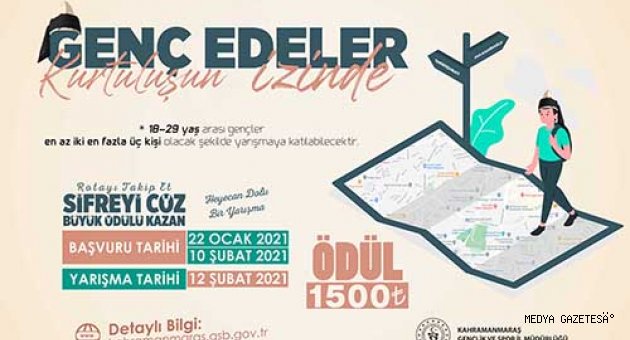 Yarışmanın amacı; Kahramanmaraş’ın Kurtuluş savaşında verdiği bağımsızlık mücadelesinin arkasındaki manevi ruh, günümüze tevarüs etmiş olan bağımsız yaşama ülküsüyle yoğrularak genlerimize kodlanan milli kültür ve ahlakımızın asalet ve ilkelerinden yola çıktığımız Maraş Muharebesi’nde etkin rol oynayan kişiler ve şehrin tarihi yerlerine dikkat çekilerek gençlerimizde milli şuurla farkındalığın arttırılmasına katkı sağlamak.Yarışmanın şekli; Yarışmaya katılmak isteyen ve başvurusu kabul edilen adaylar gruplar halinde yarışacak her grup kendi stratejisini kendisi belirleyerek hedefe ulaşmaya çalışacaktır. Yarışmada adaylara başlangıç noktasında ilk şifreleri verilecek ve adaylar şifreyi çözerek bir sonraki şifreye ulaşmaya çalışacaklardır. Yarışmada toplam 7 şifreli mekan bulunmaktadır. Yarışmada her grup için ayrı ayrı şifre olacak son şifre 1 adet olacaktır. Yarışmada belirlenen mekanlar İl Merkezi sınırları içerinde olup adaylar herhangi bir vasıta olmaksızın hedeflere ulaşabileceklerdir. Yarışma 12 Şubat 2021 saat 10.00 da Kahramanmaraş Gençlik ve Spor İl Müdürlüğü idari bina önünde Gençlik ve Spor İl Müdürü Sayın Cemil BOZ tarafından ilk şifrenin adaylara tesliminden sonra başlayacak ve son şifreyi, şifrenin bulunduğu tarihi mekan içerisinde adayların İl Müdürü Sayın Cemil BOZ’a teslim etmesinden sonra sonlanacaktır. Covid-19 salgın hastalığı nedeniyle yarışmaya en fazla 15 grup katılabilecektir. Başvuru sayısının belirlenen başvuru sayısını geçmesi durumunda yarışacak gruplar kura yöntemiyle belirlenecektir. Adaylar ekteki katılma belgesini mavi tükenmez kalemle doldurup aşağıda belirtilen adrese müracaatlarını yapabilirler. Yarışma sonrası tüm katılımcı gençlerle hatıra fotoğrafı çekilecektir.Genel Başvuru Şartları;