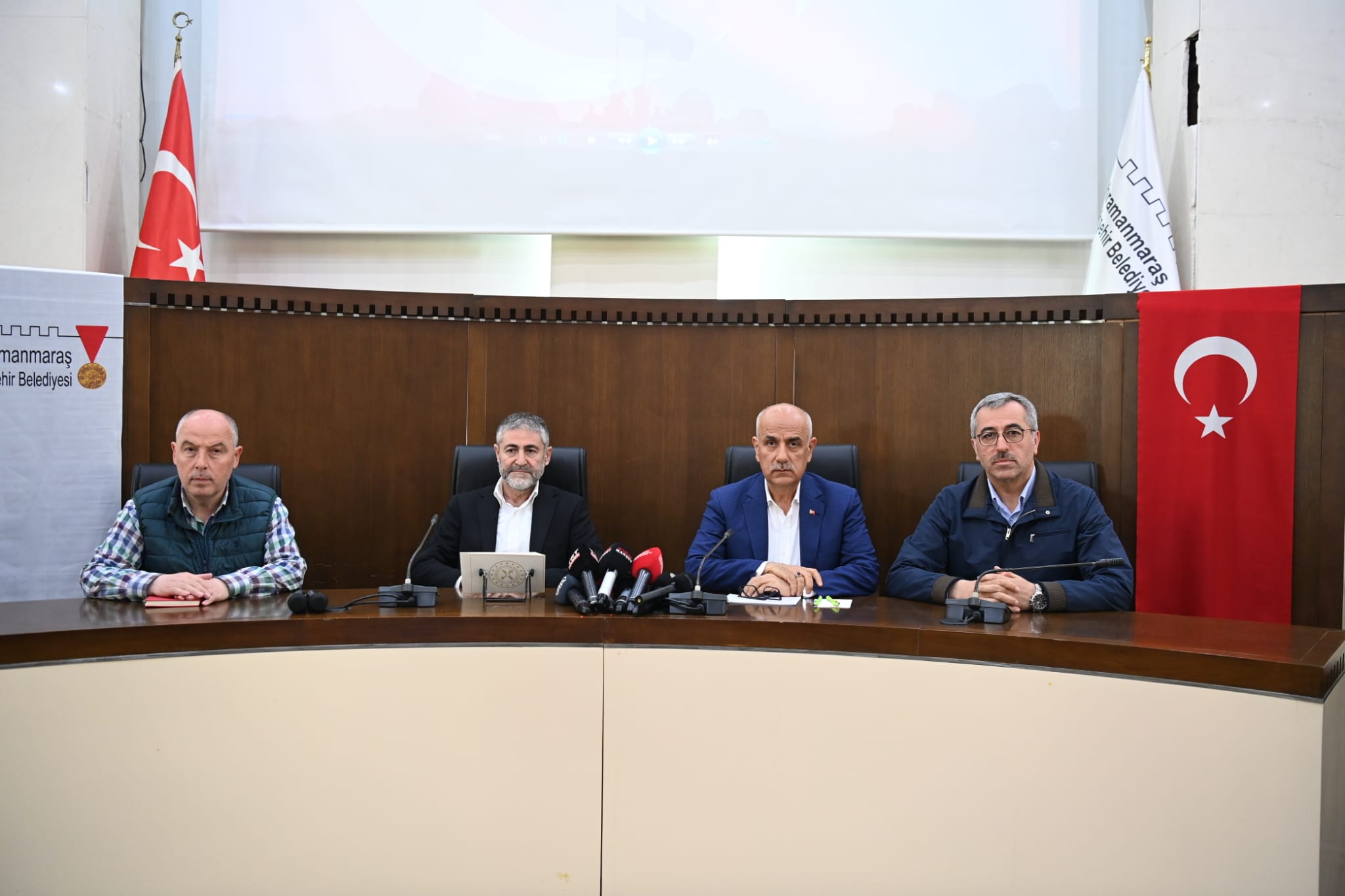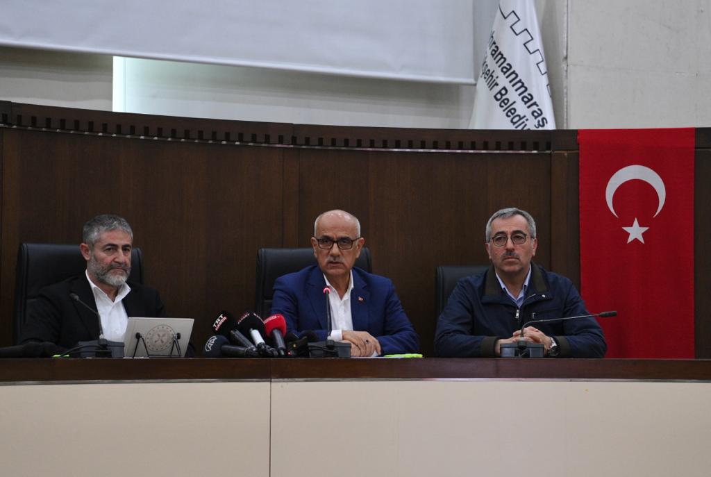 Kahramanmaraş’ta yürütülen afet ve acil durum çalışmalarına ilişkin düzenlenen basın açıklamasında konuşan Hazine ve Maliye Bakanı Nebati, “Kahramanmaraşlı esnafımız ve çiftçimizin her zaman yanındayız. Depremin merkez üssü olan Kahramanmaraş’ımız desteklerimizde önceliğimizdir. Kahramanmaraş’a çok özel bir çalışma yapma noktasında iş birliğimizi geliştirecek adımlar atıyoruz” ifadelerini kullanırken; Tarım ve Orman Bakanı Kirişci, “Bizim tüm gayretimiz Kahramanmaraş’ımızı Türkiye’de örnek bir şehir haline getirerek alt ve üstyapısıyla eşsiz bir şehir inşa etmek” dedi.Kahramanmaraş Büyükşehir Belediye Başkanı Hayrettin Güngör, Hazine ve Maliye Bakanı Dr. Nureddin Nebati ve Tarım ve Orman Bakanı Prof. Dr. Vahit Kirişci ile deprem sonrası şehirde yürütülen çalışmalara ilişkin düzenlenen istişare ve değerlendirme toplantısına katıldı. Büyükşehir Belediyesi Toplantı Salonu’nda Vali Ömer Faruk Coşkun, AK Parti İl Başkanı Fırat Görgel, ilçe belediye başkanları ve kurum yetkililerinin de yer aldığı toplantıda; afet ve acil durum yönetimi, depremzedelerin ihtiyaçlarının karşılanması, şehrin ihtiyaçları, kalıcı konut ve iş yerlerinin inşası gibi pek çok konu hakkında değerlendirmede bulunuldu. Toplantı sonrası Büyükşehir Belediyesi Meclis Salonu’nda ortak basın açıklaması düzenlendi.Kahramanmaraş’ı Hep Birlikte Ayağa KaldıracağızProgramda konuşan Tarım ve Orman Bakanı Prof. Dr. Vahit Kirişci, “Millet olarak acılı günler yaşadık. Son bin yılın en büyük afetiyle karşılaştık. Öncelikle depremde hayatını kaybeden tüm vatandaşlarımıza Allah’tan rahmet, yakınlarına başsağlığı diliyorum. Asrın felaketinde Kahramanmaraş’ımızda 12 bin 561 kardeşimizi Rahmet-i Rahman’a uğurladık. Bu acı günlerde bütünleşmeye her zamankinden daha çok ihtiyacımız var. Asrın felaketinden sonra metanetimiz ve çalışkanlığımızla Kahramanmaraş’ımızı hızla hep beraber ayağa kaldıracağız” dedi.Yıkılan Binaların Tamamına Yakını 1999 Yılı Öncesi İnşa EdildiDepremin yol açtığı tahribata ilişkin sayısal verileri paylaşan Bakan Kirişci, “Depremde yıkılan binaların yüzde 97,2’sinin 1999 yılı öncesi inşa edilmiş olduğunu tespit ettik. Yıkılan bina sayısı 7 bin 39; acil yıkılacak, ağır hasarlı, yıkık ve orta hasarlı bina sayısı 56 bin 184, enkazı kaldırılan yapı sayısı 10 bin 163, kurulan çadır 148 bin 675 adet, barınma tesislerinde 545 bin 204 kişiye hizmet verilmekte, tahliye edilen kişi sayısı 197 bin 169, 222 bin aileye deprem destek ödemesi ve 72 bin 297 aileye de taşınma desteği ödemesi sağlandı. Şu ana kadar 27 noktaya 12 bin 317 adet konteyner yerleştirildi. Böylece planlanan konteyner kentin yüzde 56’sı tamamlanmıştır. 15 noktada da çalışmalar devam ediyor” diye konuştu.Dirençli ŞehirlerBakan Kirişci, “Temel hedefimiz süratle kalıcı konutları tamamlayarak insanımızı güvenle yaşayabileceği evlere kavuşturmaktır. TOKİ’nin sağlam zeminlerde ve doğru inşaat teknikleri kullanarak inşa ettiği konutları son yaşadığımız afette iyi bir imtihan vermiştir. Afet bölgesinde inşa edilmiş 133 bini aşan TOKİ konutlarından bir tanesi bile yıkılmamıştır. Bilim insanlarımızla birlikte yerleşime açılacak alanlarda deprem, heyelan, taşkın, kaya düşmesi ve diğer afet risklerinin tespitini yaptık. Güvenli yerleşim alanları için dirençli şehirler yaklaşımımıza uygun bir şekilde planlama ve tasarım süreçlerini en detaylı şekilde tamamladık” dedi.Türkiye’ye Örnek Bir ŞehirKahramanmaraş’ın Türkiye’de örnek bir şehir haline getirileceğini belirten Kirişci, “Kalıcı konutlarla ilgili olarak şu anda ilimizde mevcut olan TOKİ evlerinden 400 adedi depremzedelere verilecek. Bunlardan 120 adedinin teslimi gerçekleştirildi. TOKİ Kahramanmaraş’ımızda 72 bin 596 konut ve 30 bin 130 köy evi inşa ediyor. Tüm gücümüzle şehrimizi ve insanımızı ayağa kaldırmaya odaklandık. Bizim tüm gayretimiz Kahramanmaraş’ımızı Türkiye’de örnek bir şehir haline getirerek alt ve üstyapısıyla eşsiz bir şehir inşa etmek” cümlelerini kaydetti.Tarımsal Faaliyetin SürdürülmesiTarım ve Orman Bakanı Prof. Dr. Vahit Kirişci konuşmasını, “Ülkemizin tarımsal hasılasının yüzde 15’i, çiftçilerimizin de 7’de 1’i yaşadığımız depremden etkilenen 11 ilimizde bulunuyor. Bereketli hilalin göbeğinde yer alan bu illerimizin potansiyelini azami düzeyde değerlendirecek şekilde afet sonrası güçlü bir iyileştirme programını hayata geçireceğiz. Afet bölgesinin ülkemizin tarımsal üretimi bakımında önemini dikkate alarak gıda arz güvenliği teminatı için bölgede tarımsal faaliyetin sürdürülmesi öncelikli hedefimiz olmuştur. Ayrıca tarımsal üretim alanında tarım arazilerinin korunması üreticilerimizin güvenli bölgelerde yaşamlarının temin edilmesi, ekonomik ve sosyal refahı artırıcı projelerin hayata geçirilmesi için çalışacağız. Afet bölgesinde stratejik ürünlerde fark ödemesi ve sözleşmeli üretim yöntemlerine mutlaka öncelik vereceğiz. Bütün kurumlarımızla birlikte depremin yaralarını el birliğiyle saracağız” cümleleriyle noktaladı.Şehirlerimizi Hızlı Bir Şekilde Ayağa KaldıracağızDepremde hasar alan şehirlerin hızlı bir şekilde ayağa kaldırılacağını vurgulayan Hazine ve Maliye Bakanı Dr. Nureddin Nebati, “Kahramanmaraşlı vatandaşlarımızla birlikte toplamda 14 milyon insanımızı doğrudan etkileyen büyük depremler hepimizin yüreğini yaktı. Vefat eden tüm kardeşlerimize Allah’tan rahmet, tüm milletimize başsağlığı ve metanet diliyorum. Sütçü İmam’ın, Evliya Efendi’nin ve nice isimsiz kahramanların destanl